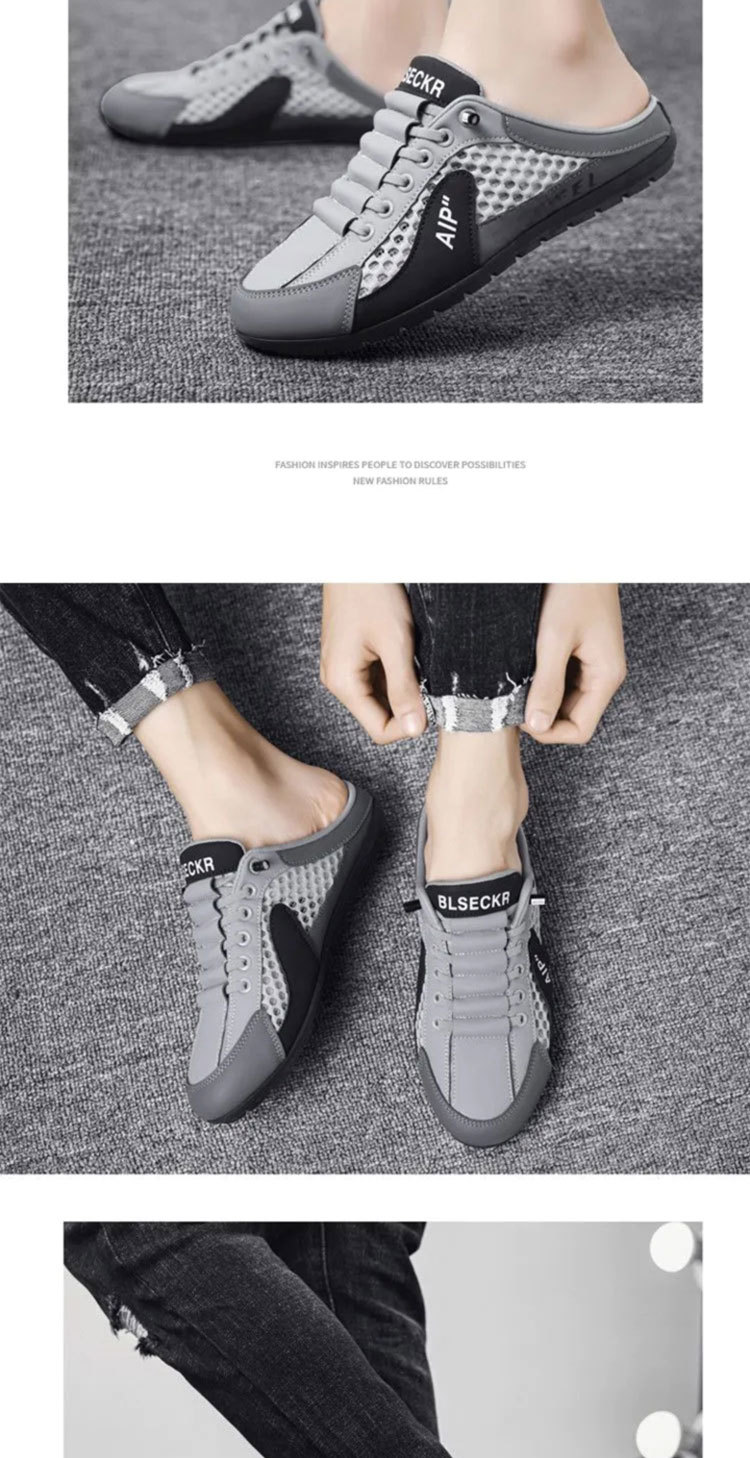 Lingshifen 남성 신발 2025 새로운 파라 신발 여름 중공 메쉬 토우 슈즈 슬립 온 통기성 게으른 슬리퍼