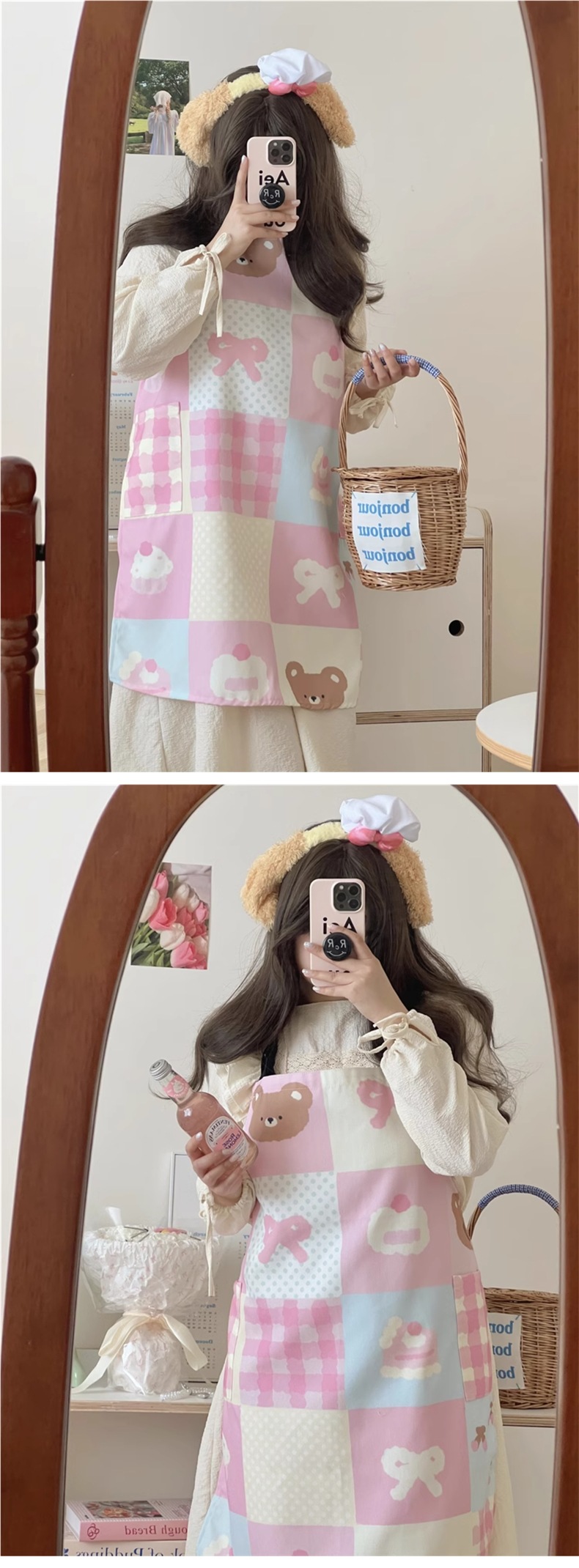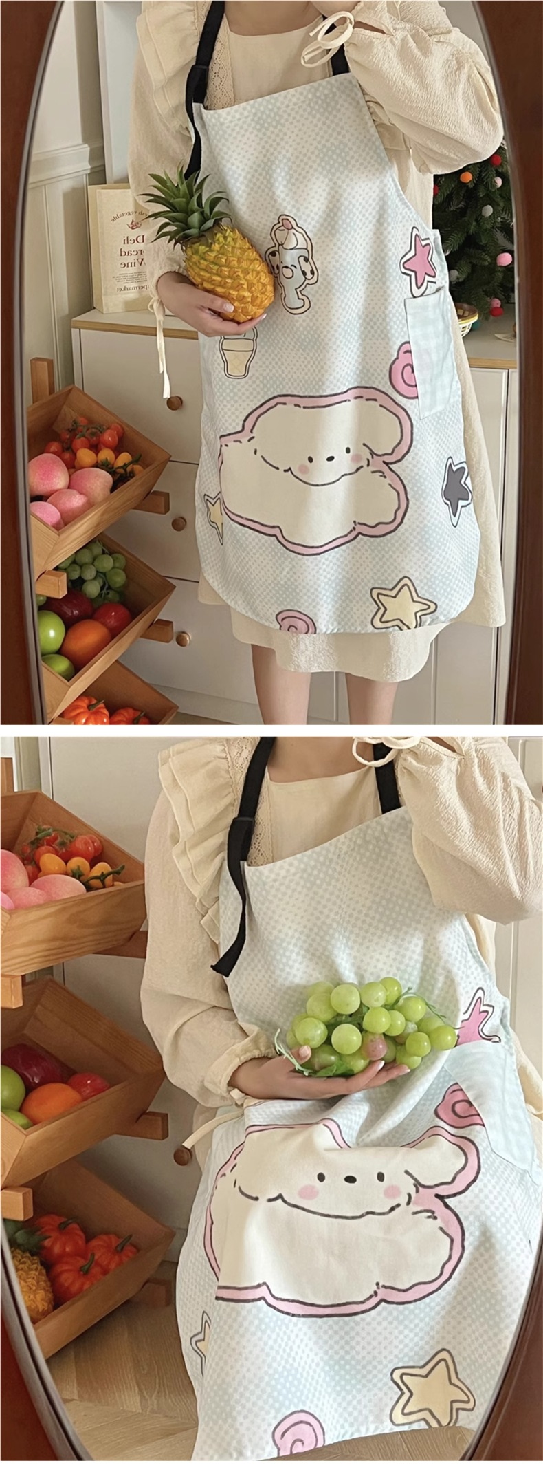 너무 귀여워요! 한국 블로거 주방 방수 만화 앞치마 요리 가정용 작업복 방수 아름다운 작업복 여성용스토어 가기