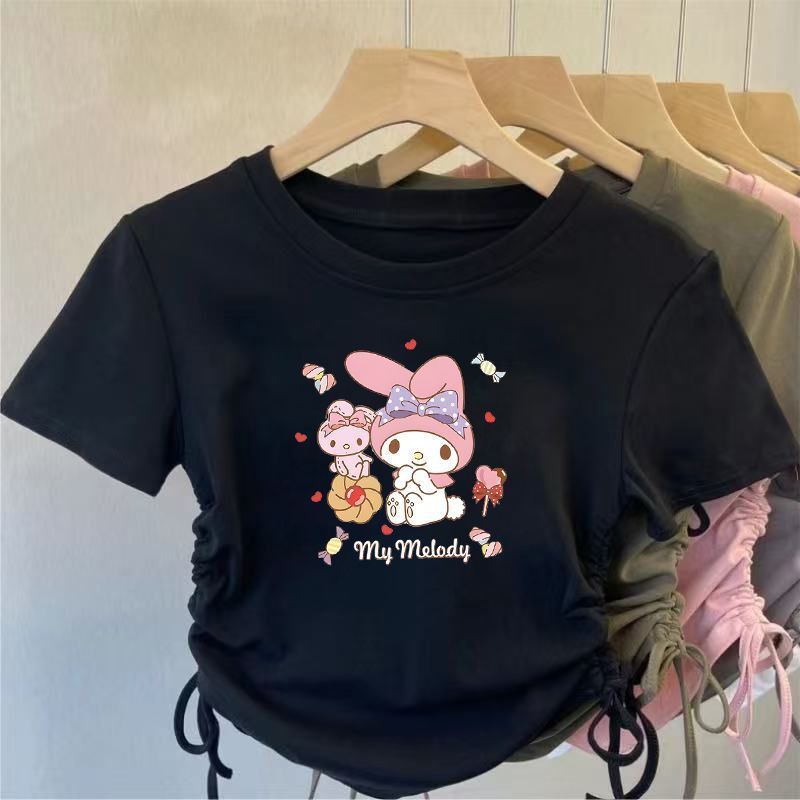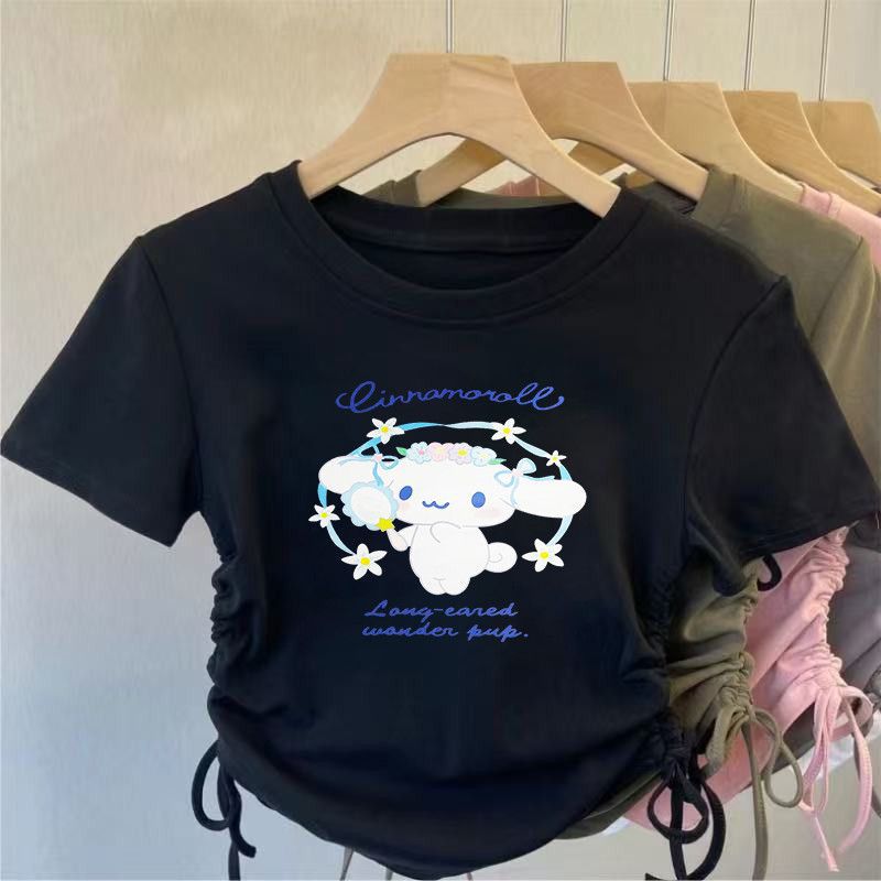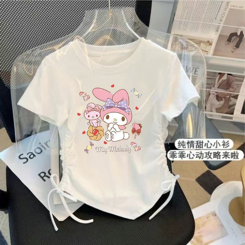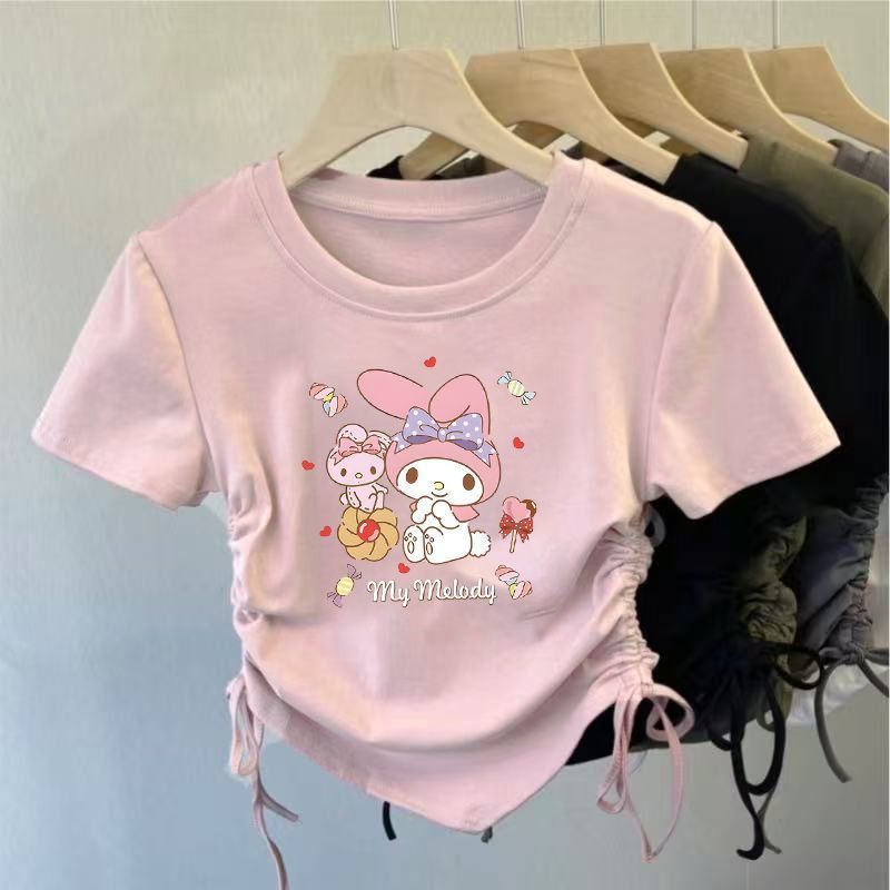 Jade Dog Girls Drawstring 반팔 티셔츠 Xia Kuromi 큰 어린이 짧은 셔츠 여성용 얼음 실크 스레드 반팔 탑스토어 가기