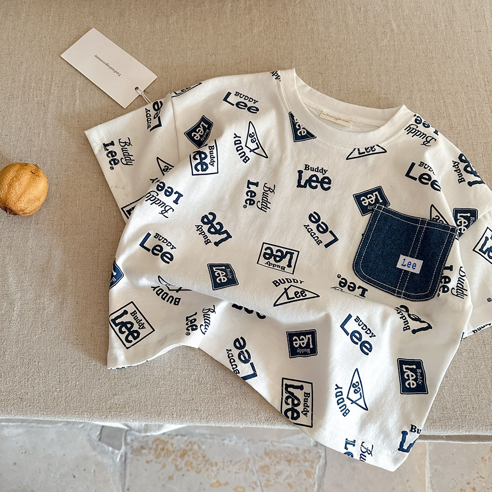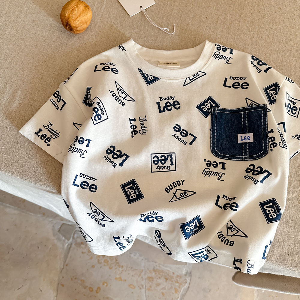어린이 반소매 티셔츠 여름 남자 2025 새로운 어린이 풀 프린트 패션 브랜드 베이비 포켓 반소매 티셔츠 여성용 씬스토어 가기