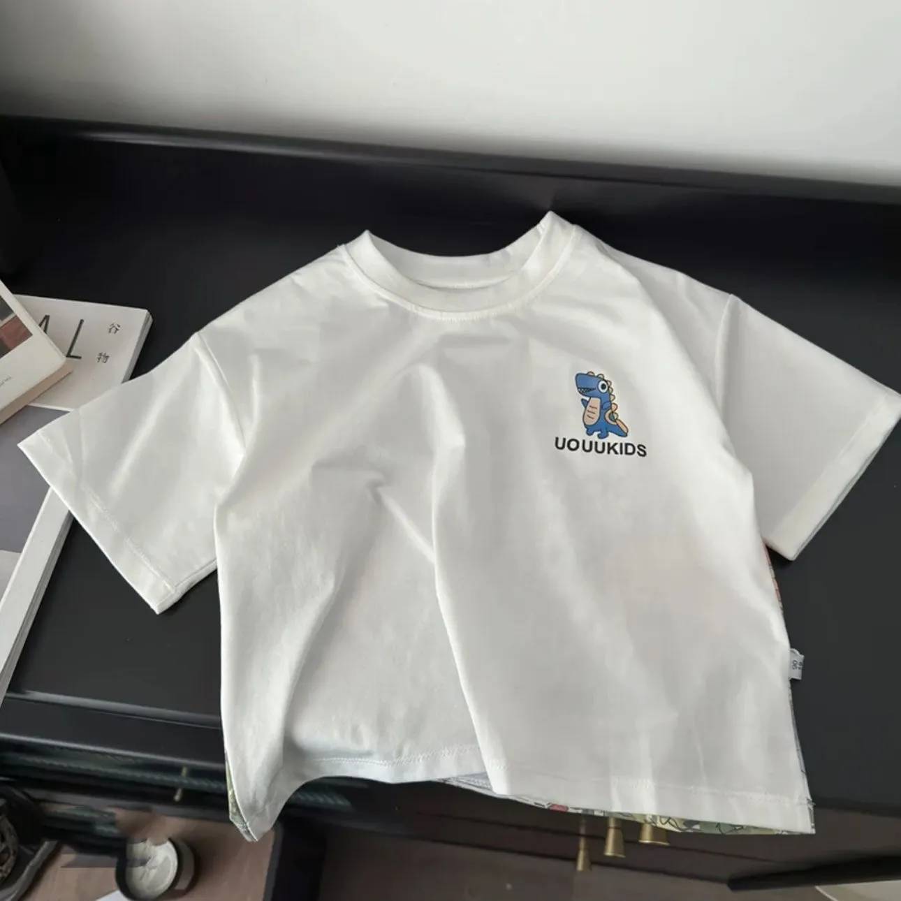 소년 반팔 티셔츠 2025 여름 새로운 어린이 맞춤형 퓨어 코튼 디지털 인쇄 통기성 공룡 탑스토어 가기