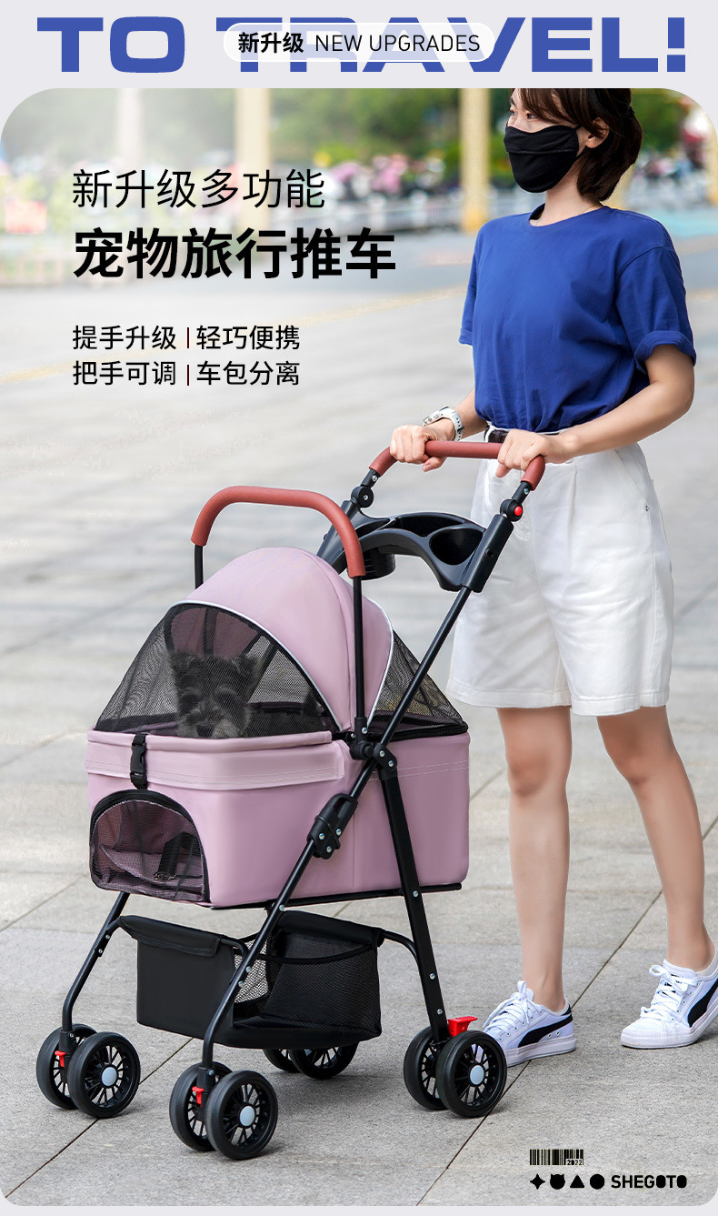 개와 고양이를 위한 애완동물 유모차, 가볍고 분리 가능, 애완동물을 위한 야외용 유모차, 분리 가능한 캐리어, 접이식스토어 가기