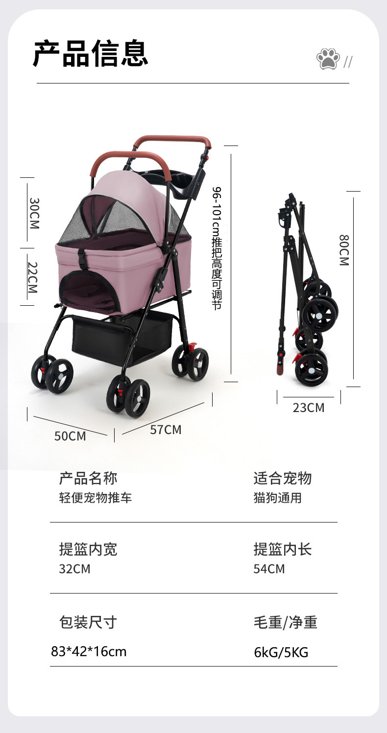 개와 고양이를 위한 애완동물 유모차, 가볍고 분리 가능, 애완동물을 위한 야외용 유모차, 분리 가능한 캐리어, 접이식