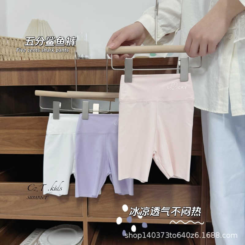 소녀 레깅스 반바지 안전 바지 안티 라이트 외부 착용 여름 얇은 소녀 바지 5 점 어린이 상어 바지스토어 가기