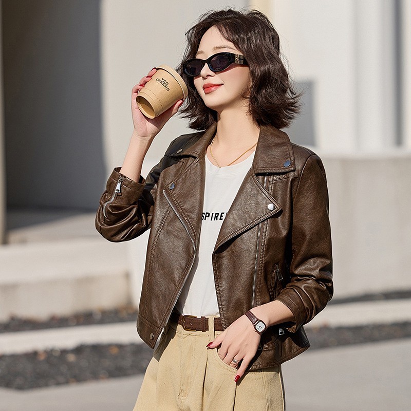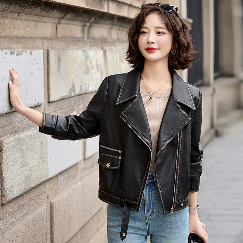 여성을위한 카운터 양피 가죽 자켓 2025 새로운 슬리밍 및 높이 다목적 여성 자켓 기질 옷깃 여성 자켓스토어 가기
