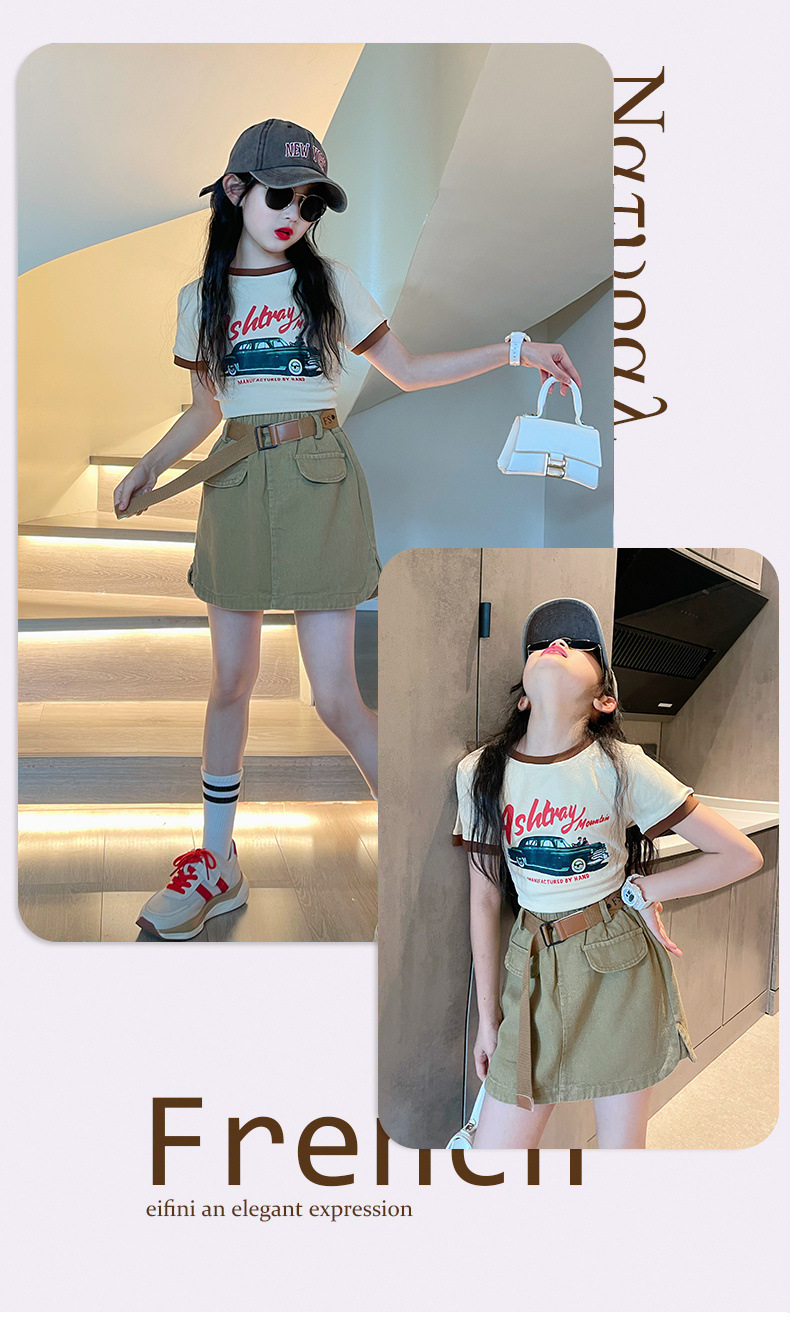여자 스커트 정장 여름 2025 새로운 스타일 13 세 소녀 유행 여름 옷 어린이 여름 반팔 투피스 세트스토어 가기