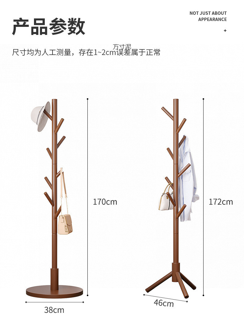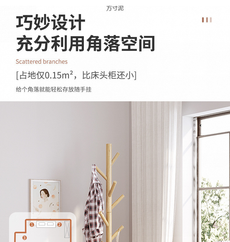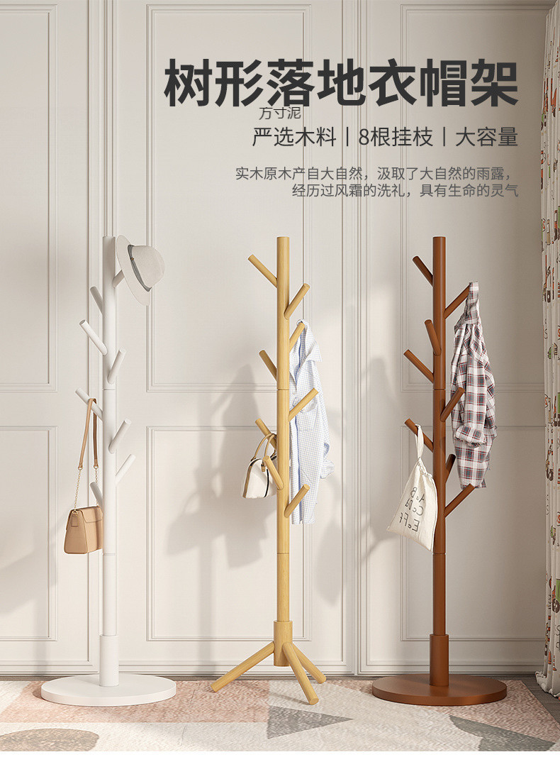 단단한 나무 옷걸이 바닥 옷걸이 거실 사무실 침실 머리맡 기숙사 홈 수직 옷걸이