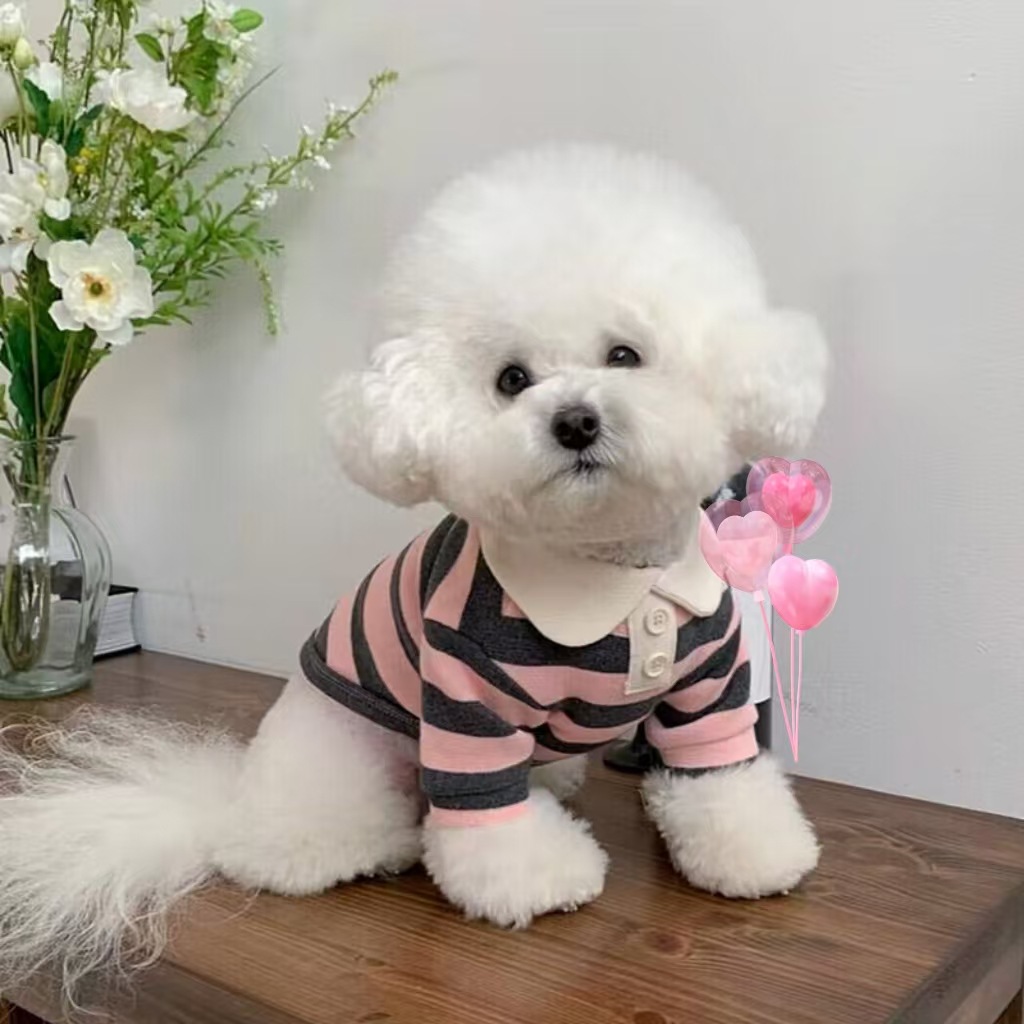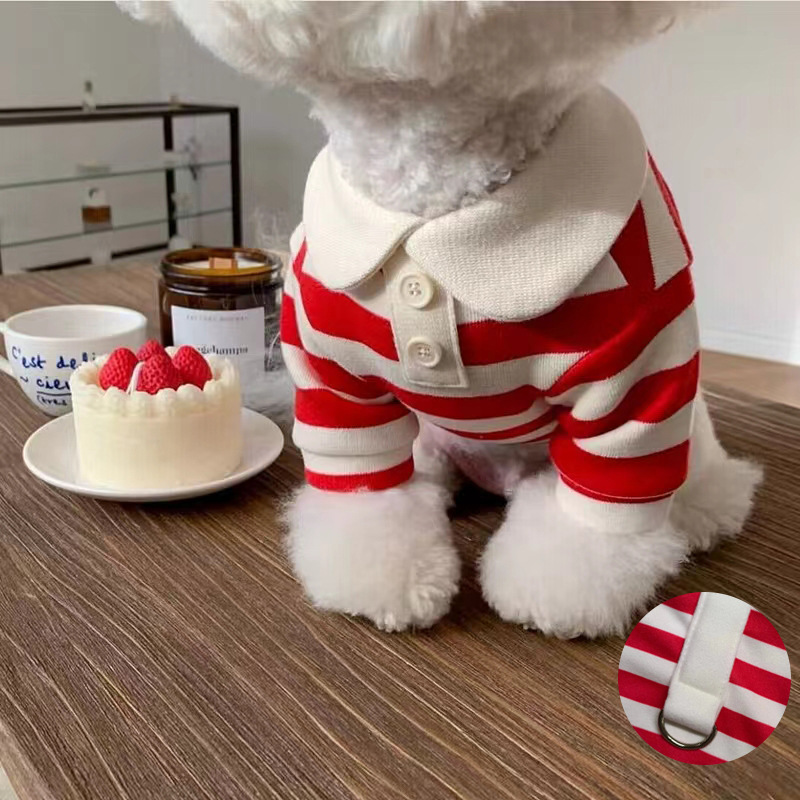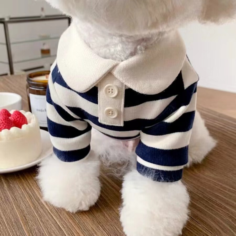 스트라이프 폴로 셔츠 강아지 옷 여름 얇은 테디 비숑 슈나우저 애완 동물 여름 고양이 봄 옷