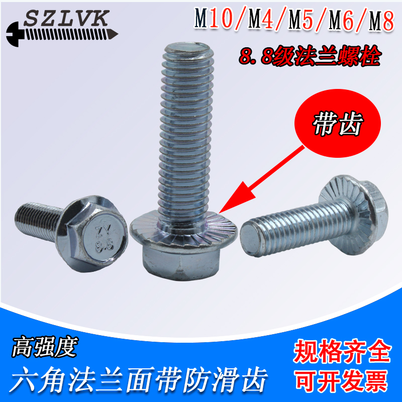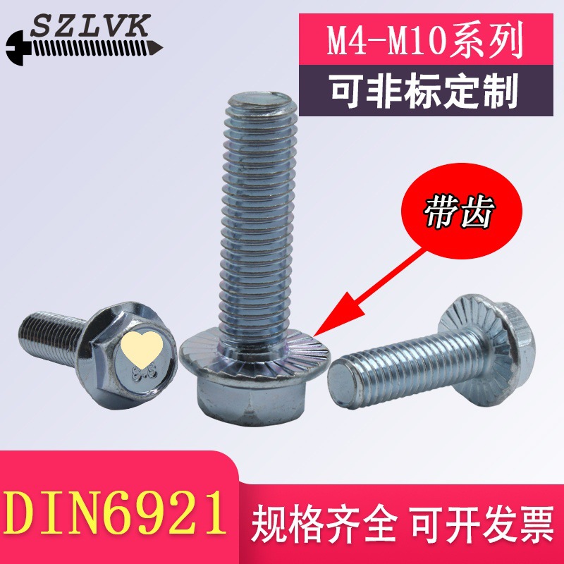 8.8 등급 외부 육각형 DIN6921 플랜지 톱니 볼트 m4-m12 아연 도금 패드 나사 비표준 가능스토어 가기