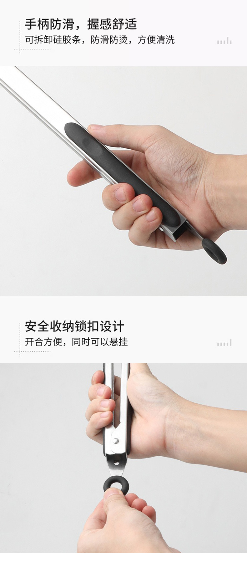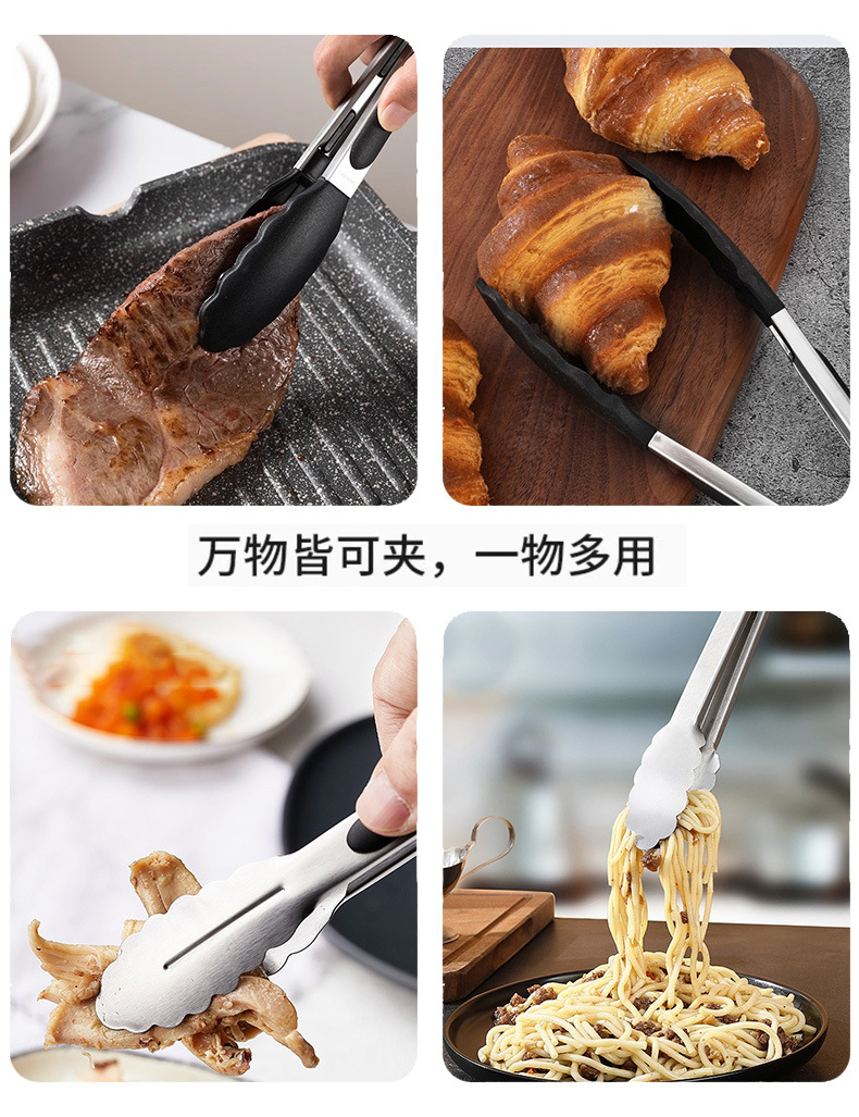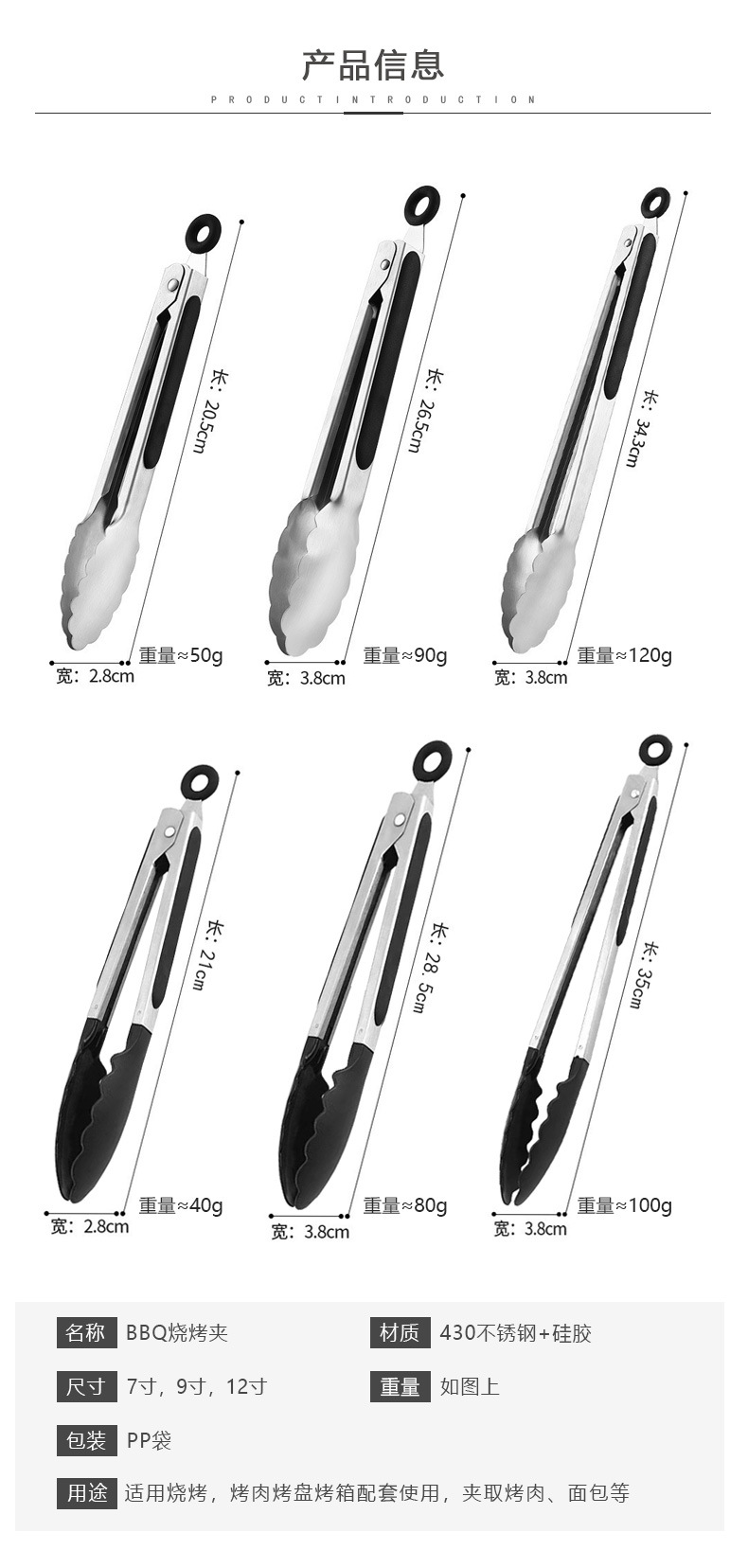 现货硅胶冰夹不锈钢烧烤夹 家用厨房烤肉夹牛排夹食品夹子食物夹