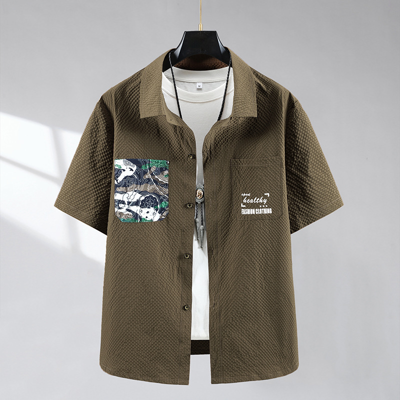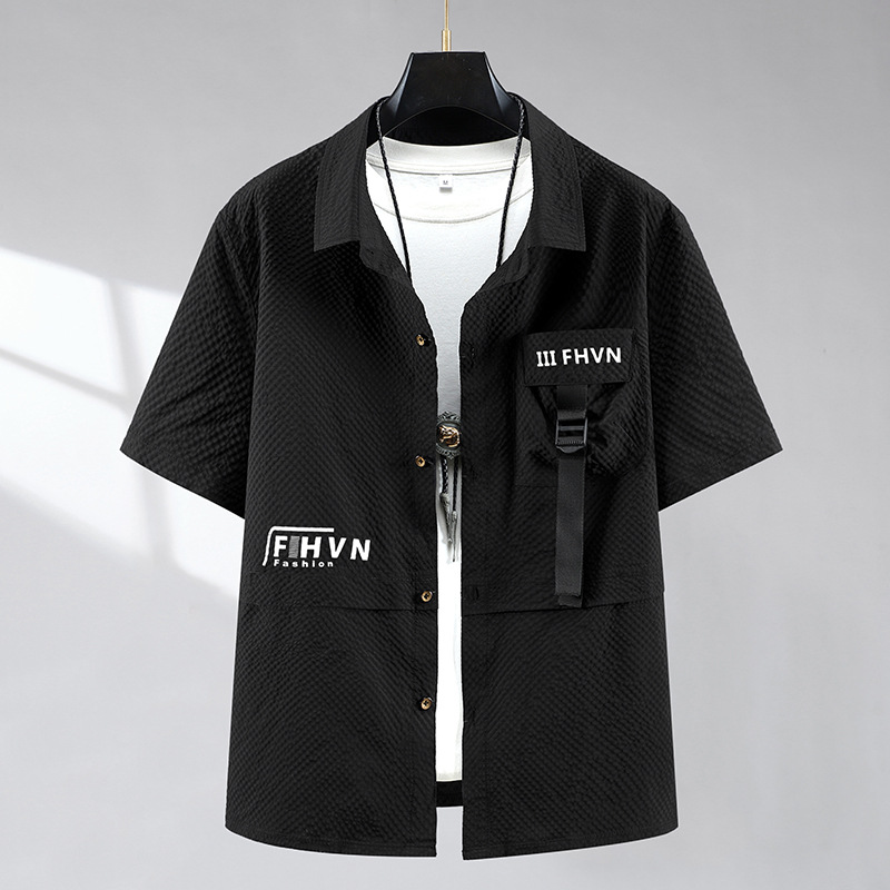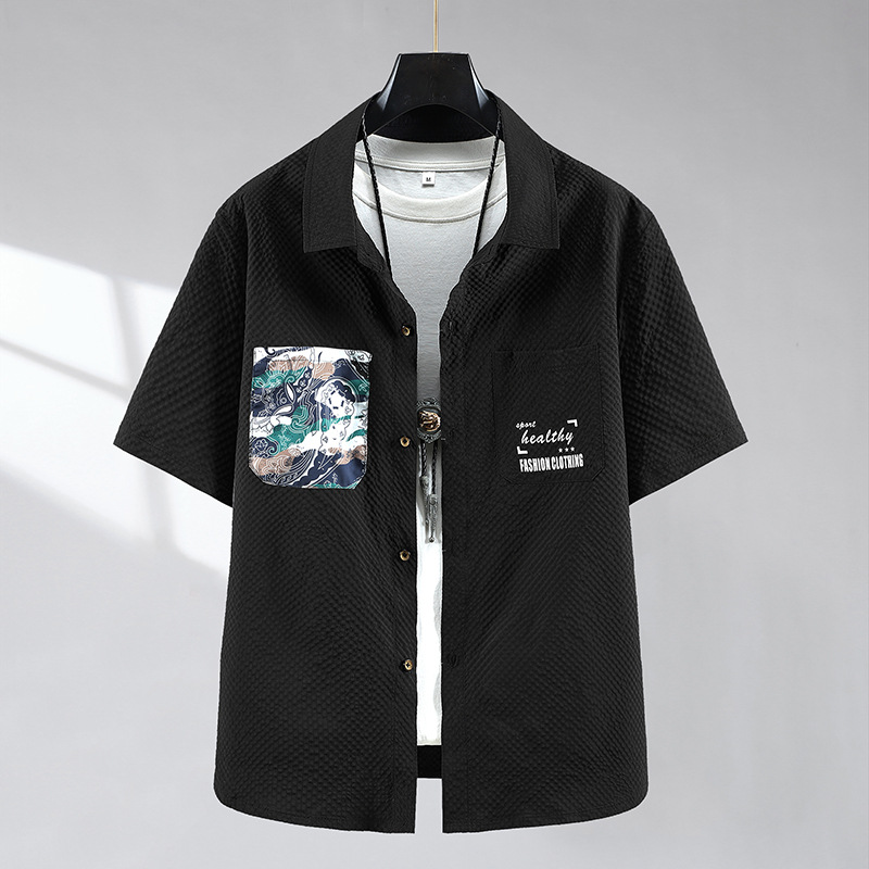 여름 뚱뚱한 남자의 반팔 셔츠 남자의 유행 잘 생긴 반팔 셔츠 느슨한 플러스 남성용 대형 캐주얼 탑스토어 가기
