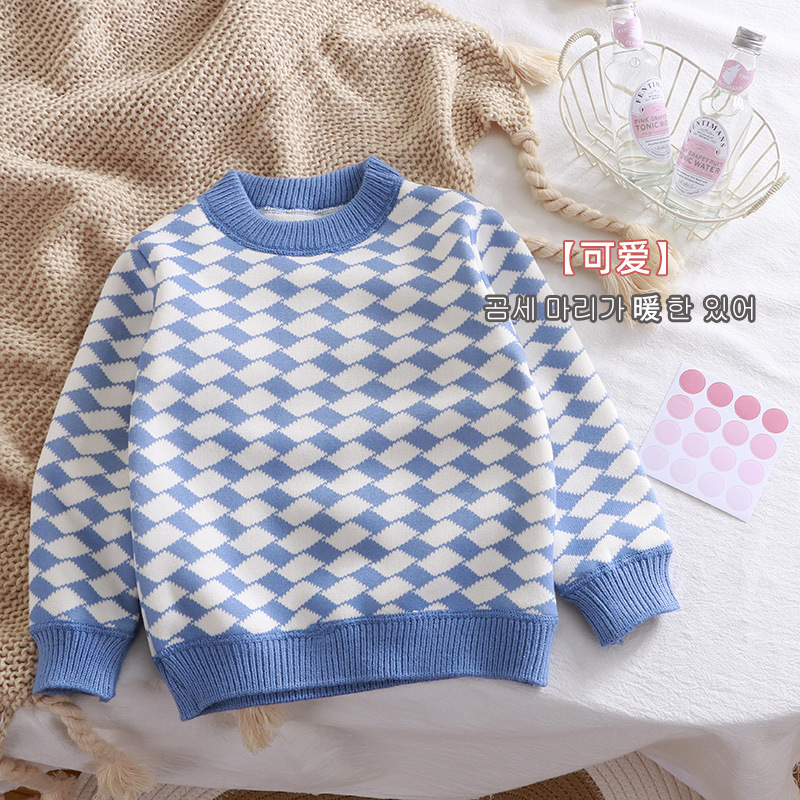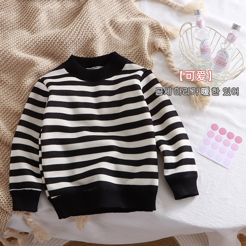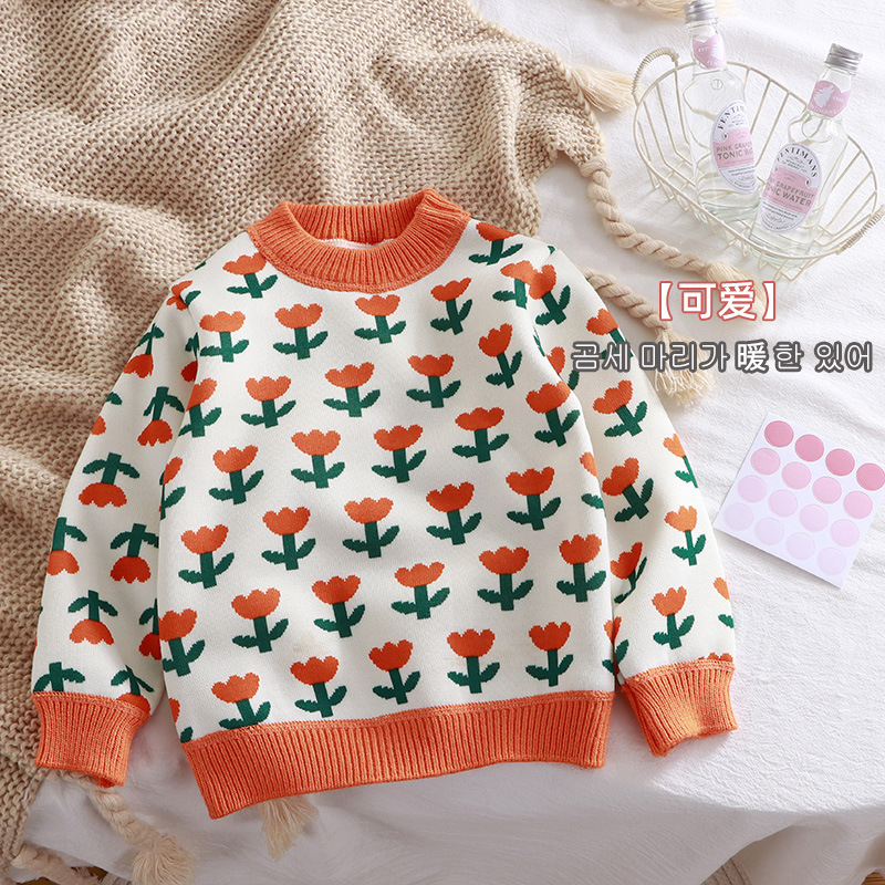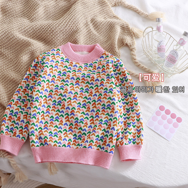 2024 새로운 가을, 겨울 어린이 스웨터 플러스 벨벳 두꺼운 소녀 스웨터 가을, 겨울 아동 의류 소년 라운드 넥 스웨터스토어 가기