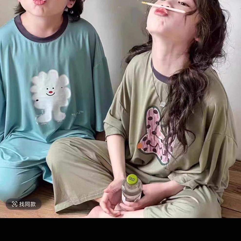 아동 의류 아동 잠옷 2025 새로운 소년 가정 의류 여름 모달 양복 아기 편안한 반팔