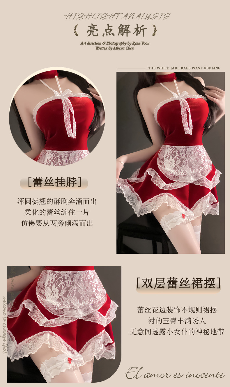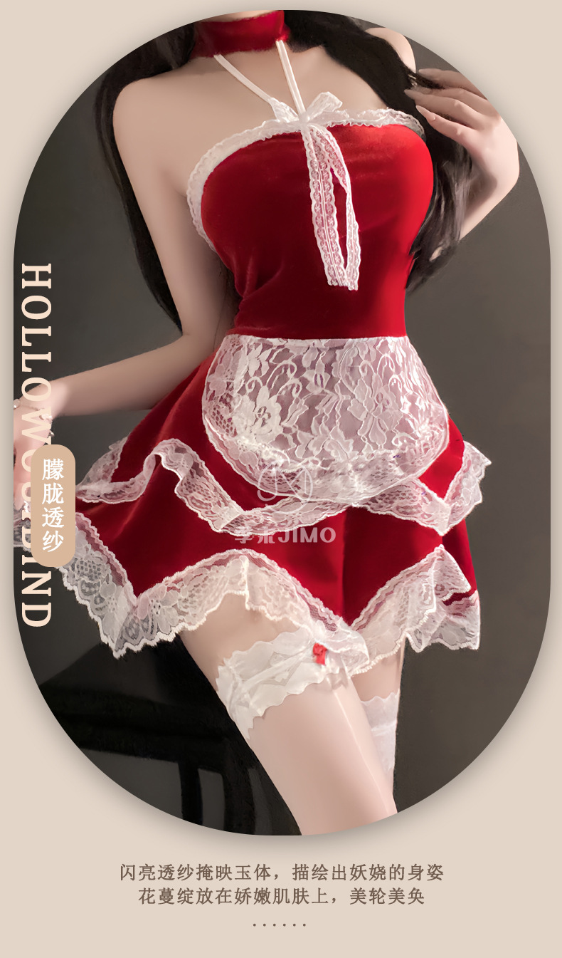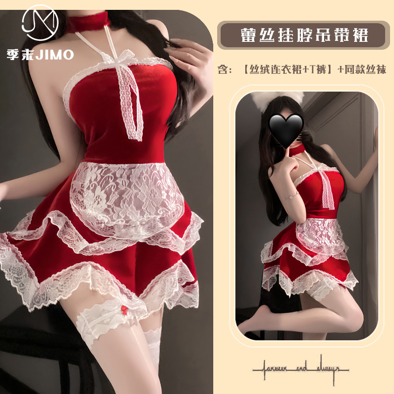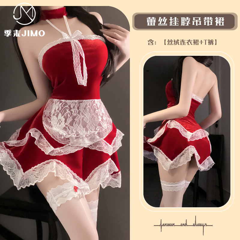 시즌 종료 달콤한 홀터넥 스플라이스 레이스 튜브 탑 벨벳 케이크 스커트 순수한 욕망 COS 크리스마스 의상 섹시한 속옷 9007