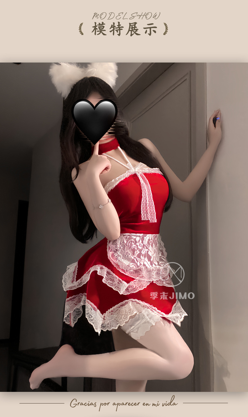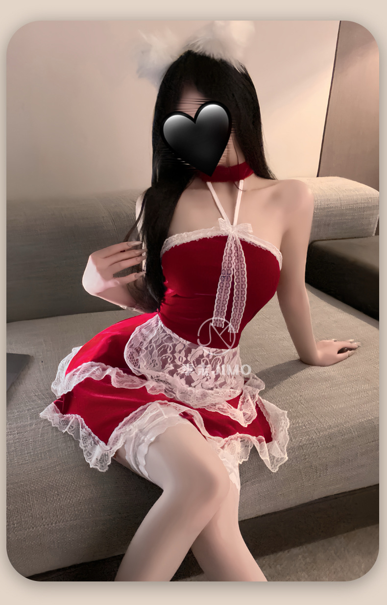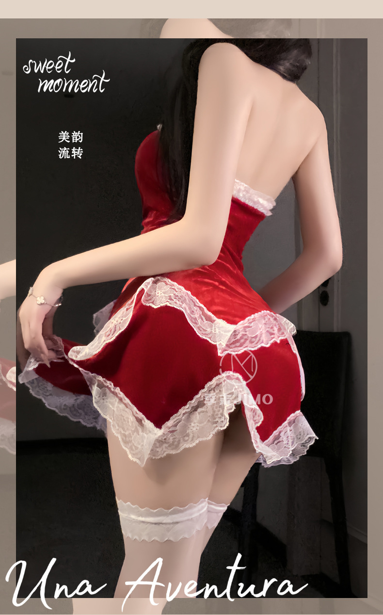 시즌 종료 달콤한 홀터넥 스플라이스 레이스 튜브 탑 벨벳 케이크 스커트 순수한 욕망 COS 크리스마스 의상 섹시한 속옷 9007