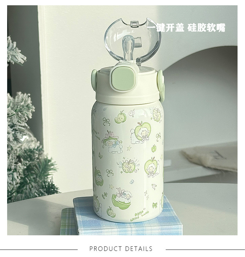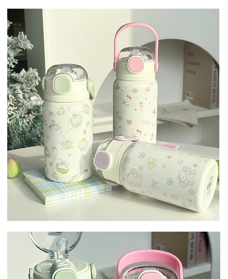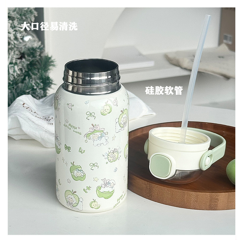여성용 고급스러운 316 스테인리스 보온병, 학생 및 어린이용 빨대컵, 휴대용 대용량 컵스토어 가기
