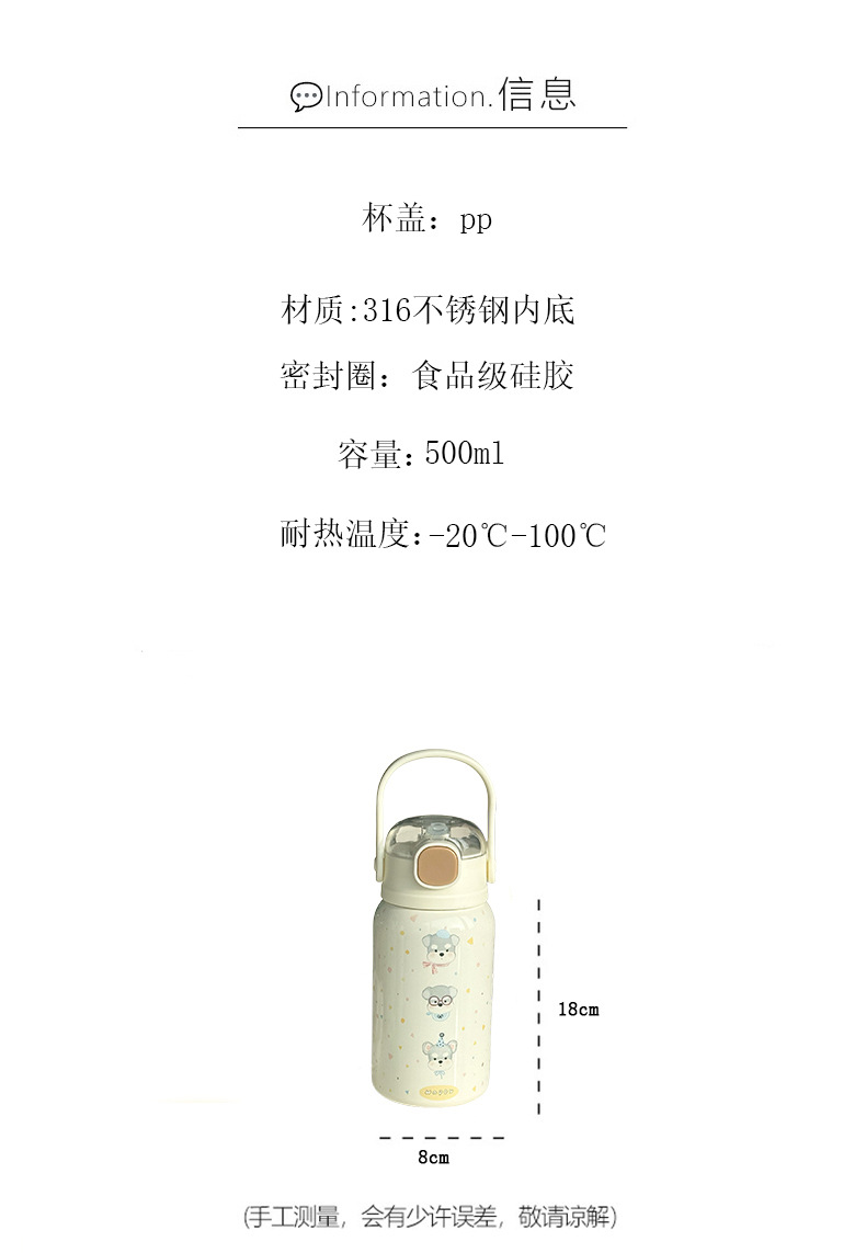여성용 고급스러운 316 스테인리스 보온병, 학생 및 어린이용 빨대컵, 휴대용 대용량 컵