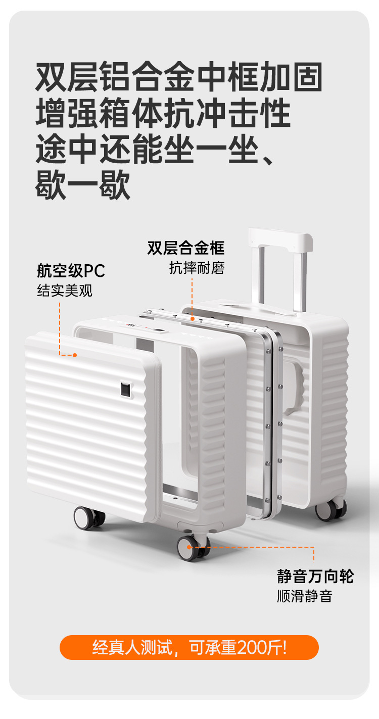 여성용 18 인치 탑승 수하물 케이스 소형 20 인치 16 단거리 여행 남성용 초경량 전면 개방 알루미늄 프레임 트롤리 케이스스토어 가기