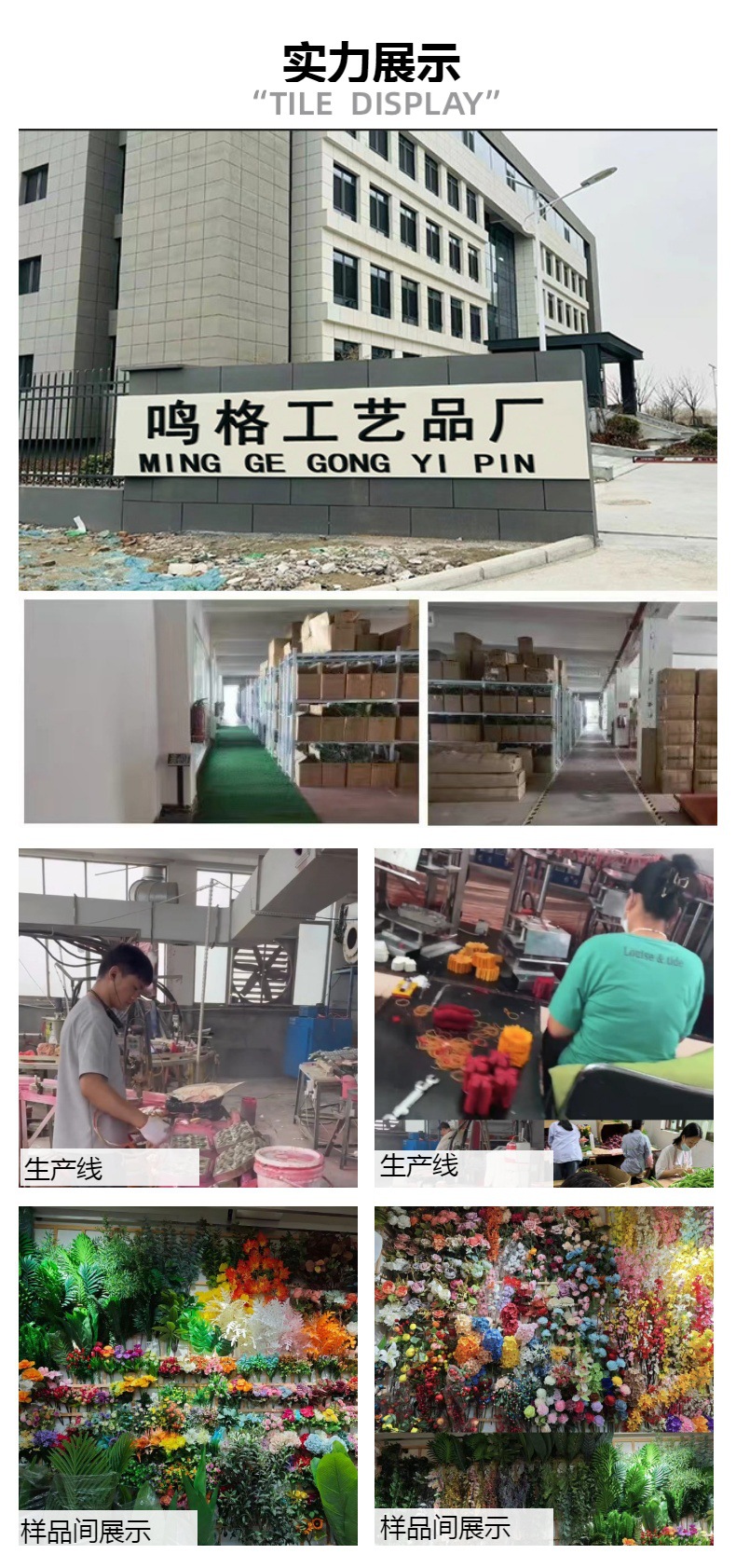 工厂介绍:义乌市鸣格工艺品厂是一家集生产加工于销售为一体,经营仿真多肉盆栽、仿真人造草坪,仿真花等产品的公司,拥有完整、科学的质量管理体系,精湛的营销团队。我们的理念是“诚信为本,服从市场,源于客户” 。本公司秉承优速发货/ 售后无忧的经营模式 。欢迎各界朋友莅临参观、指导和业务洽谈。
