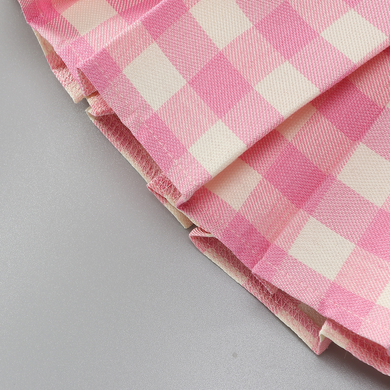 핑크 격자 무늬 주름 치마 소녀의 봄과 여름 뜨거운 소녀 도파민 달콤한 소녀 격자 무늬 높은 허리 치마