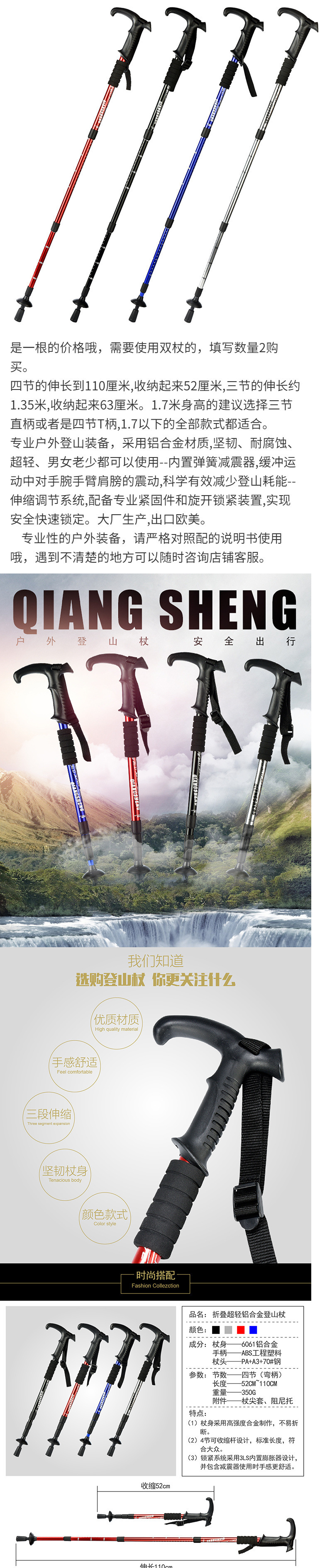 마운틴 클라이밍 스틱 강한 야외 텔레스코픽 울트라 라이트 남성과 여성의 T 핸들 4 섹션 3 하이킹 마운틴 클라이밍 스틱 워킹 스틱스토어 가기