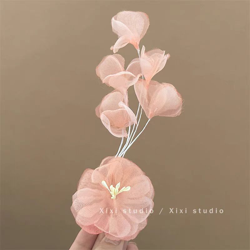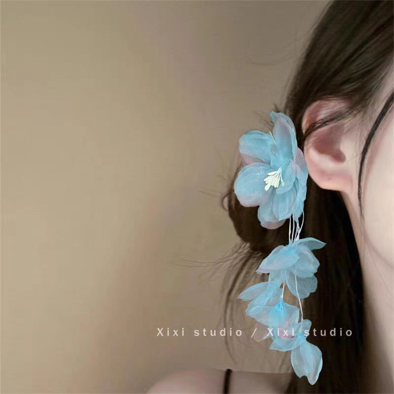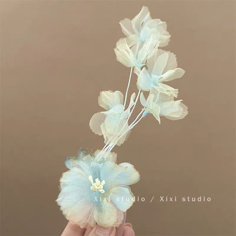 그라디언트 블루 쉬폰 브랜치 플라워 헤어핀 2025 새로운 분위기 사이드 브랜치 헤어핀 사진 헤어 액세서리스토어 가기