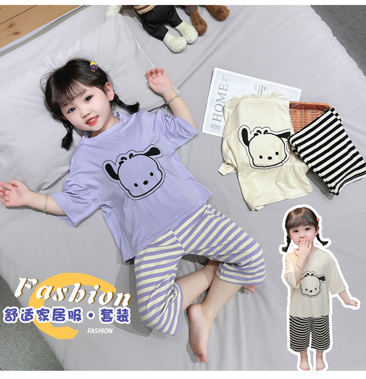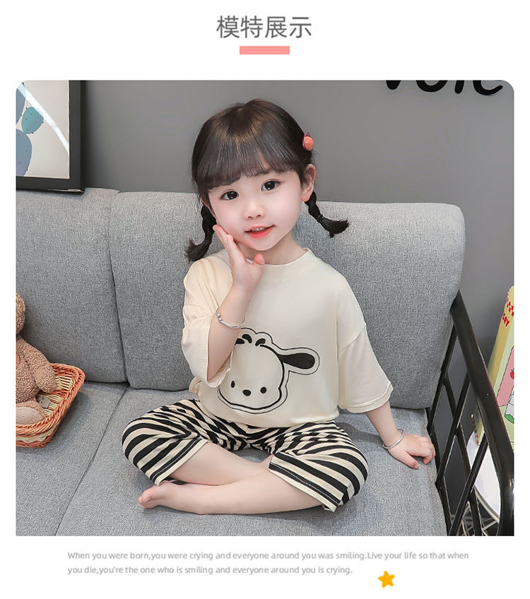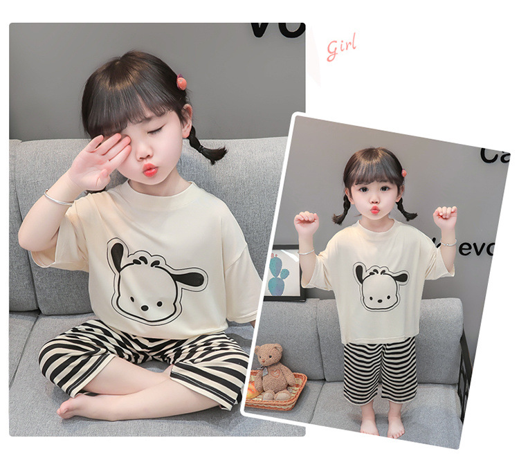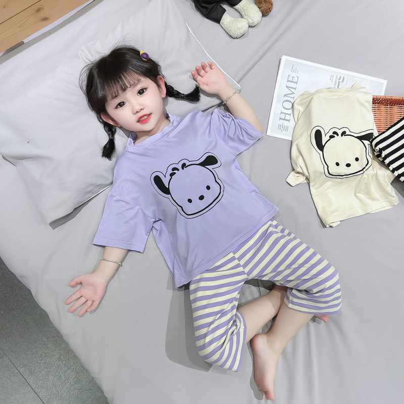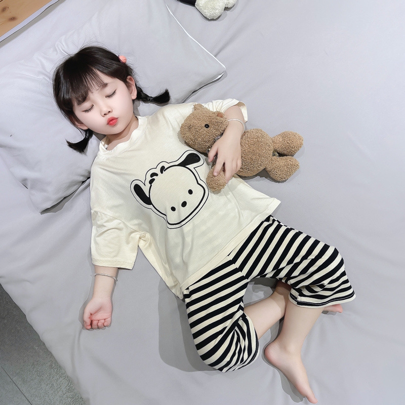 어린이 에어컨 의류 세트 여름 스타일 얇은 반팔 얼음 실크 아기 소녀 모달 스플릿 홈 의류