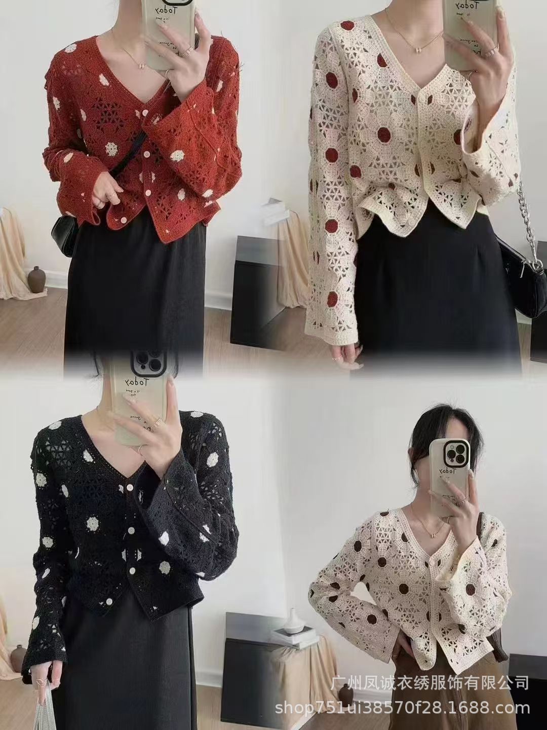 폴카 도트 v 넥 태슬 스웨터 여성 가을 슬림 니트 다용도 카디건 시크 루즈 탑 트렌디 긴 소매스토어 가기