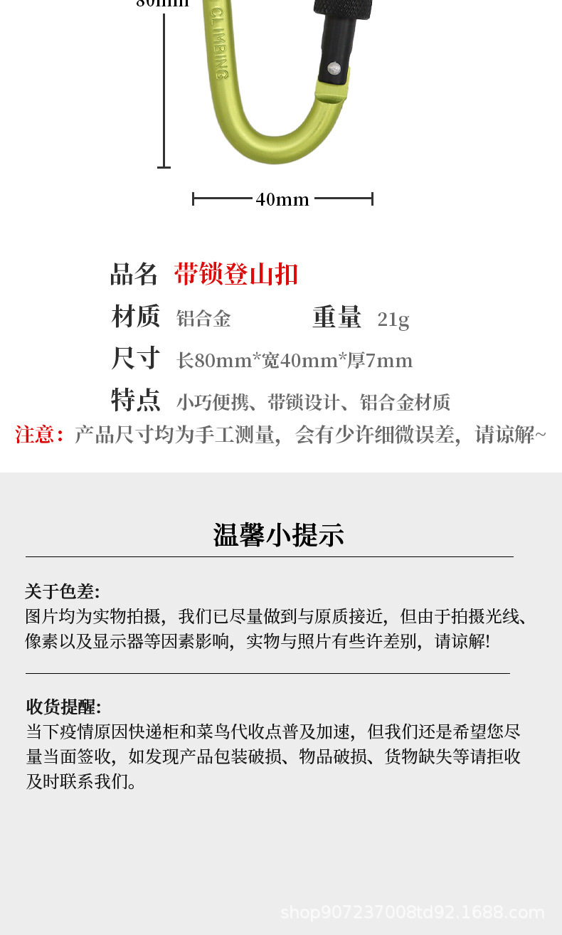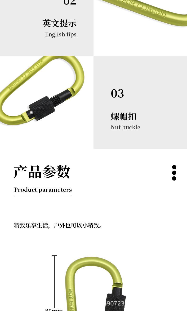 두꺼운 원형 8CM 잠금 장치가 있는 D형 카라비너 ​​퀵 걸이 너트 버클 걸이 버클 알루미늄 합금 배낭 버클 야외 보관