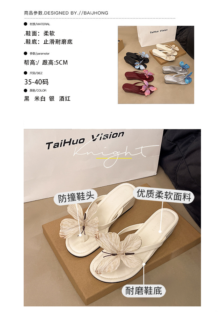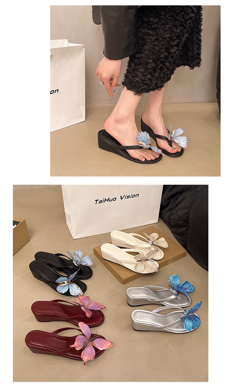 웨지 보우 플립 플롭스 여자 2025 년 여름 뉴 캐주얼 아우터웨어 샌들이 달린 올 매치 홀리데이 샌들스토어 가기