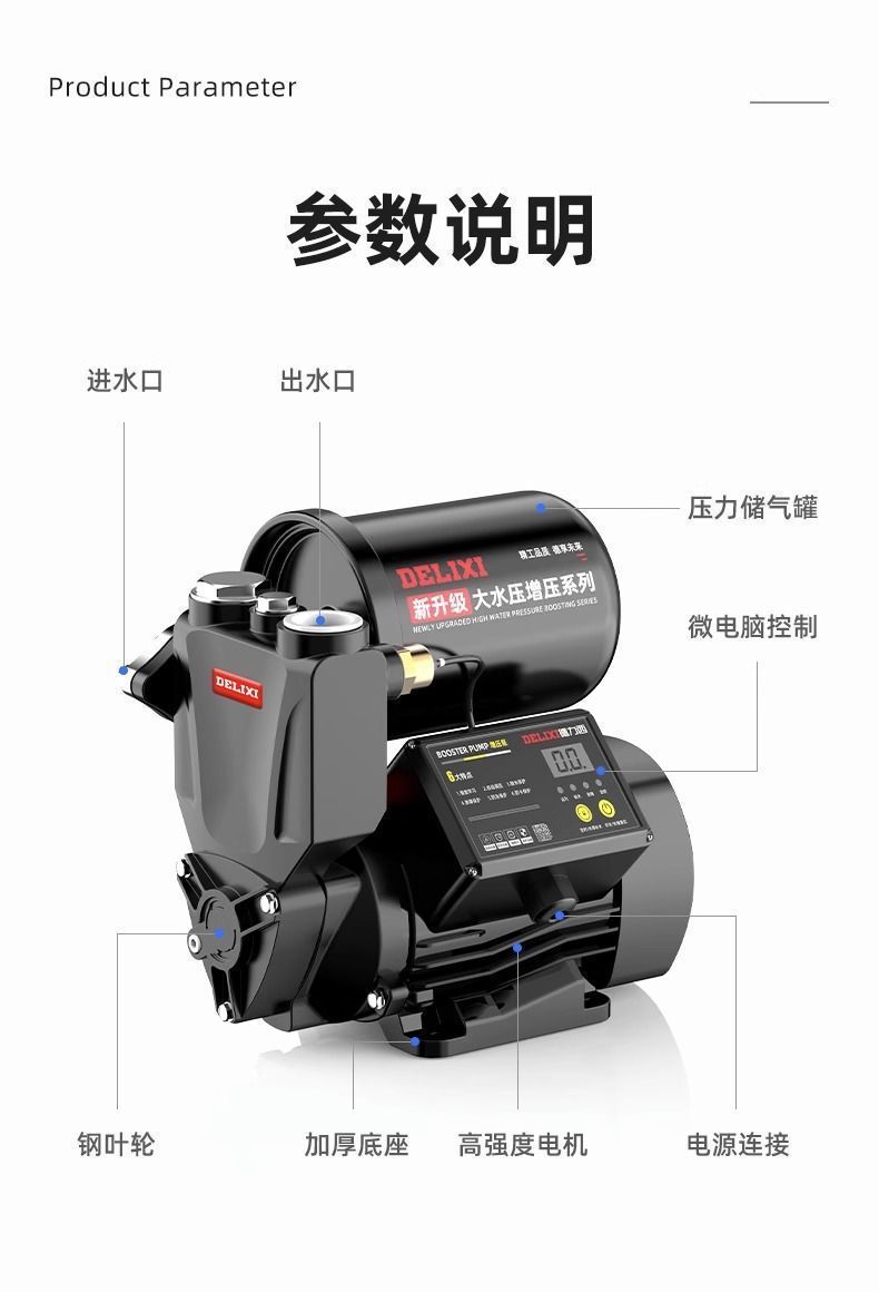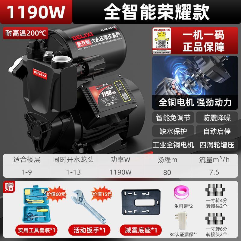 Delixi 부스터 펌프 가정용 완전 자동 자체 흡입 펌프 자동 220v 수돗물 소형 파이프라인 가압 펌프