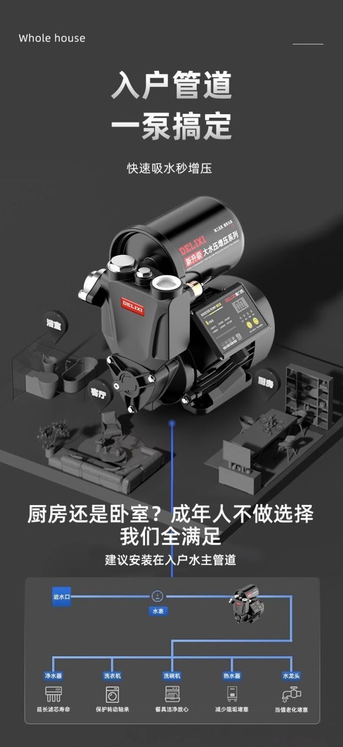 Delixi 부스터 펌프 가정용 완전 자동 자체 흡입 펌프 자동 220v 수돗물 소형 파이프라인 가압 펌프스토어 가기