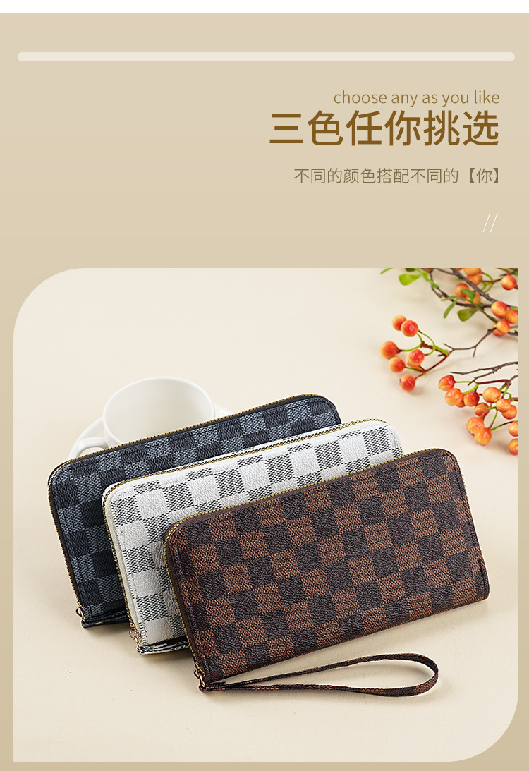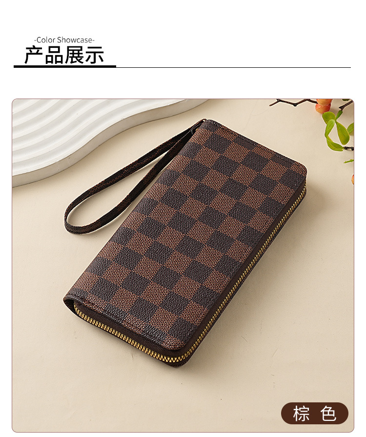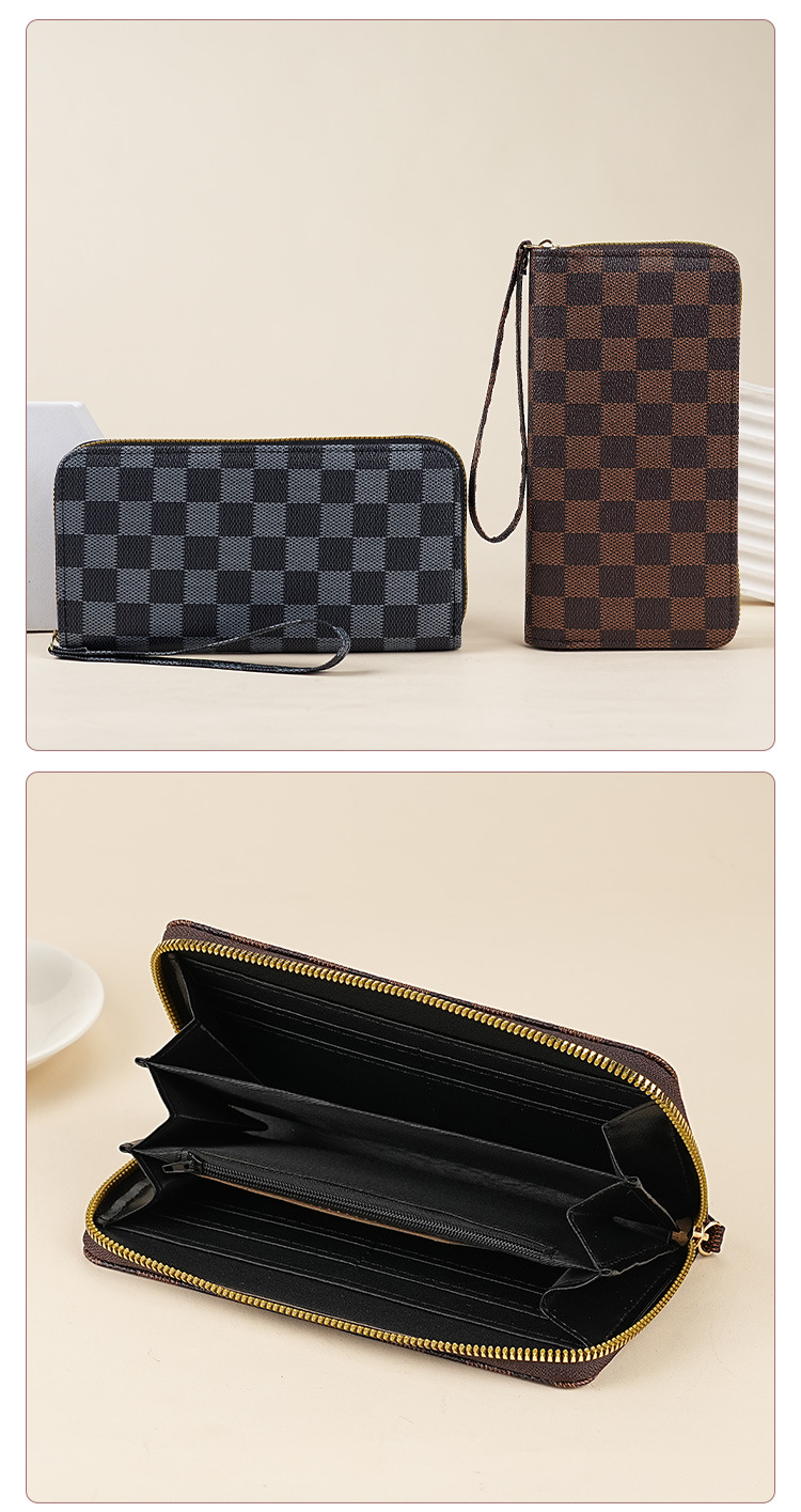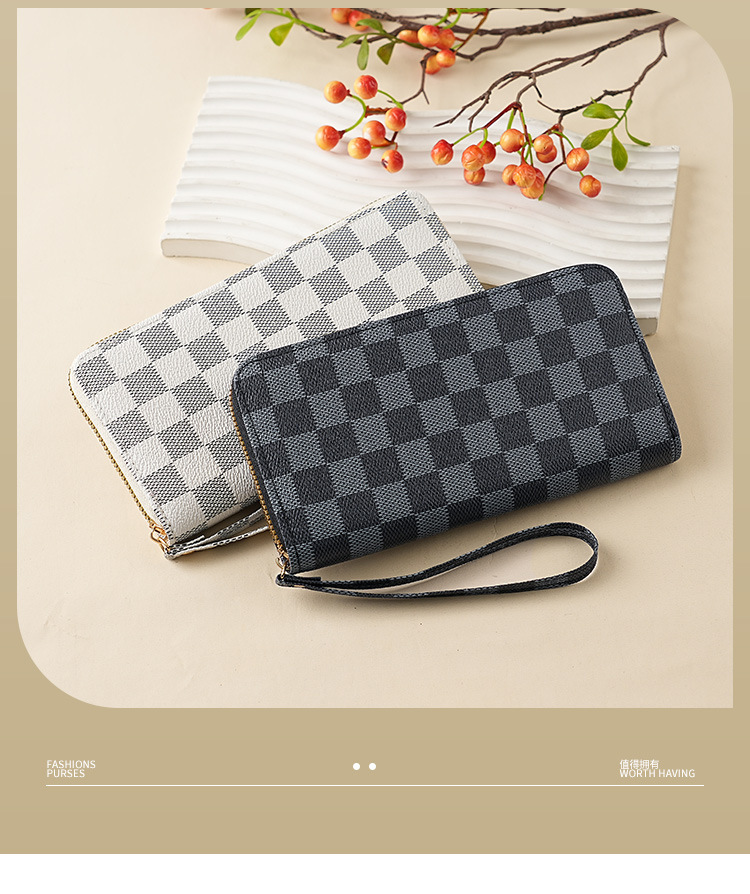 2025 새로운 남여 지갑 긴 지퍼 인쇄 지갑 공장 현장 도매 바둑판 지갑