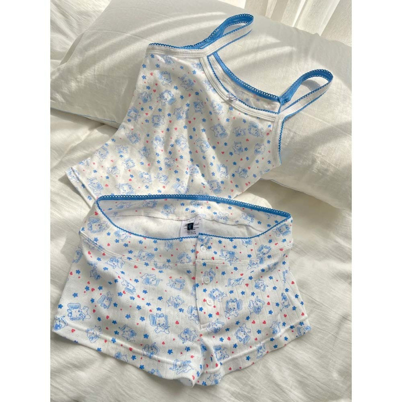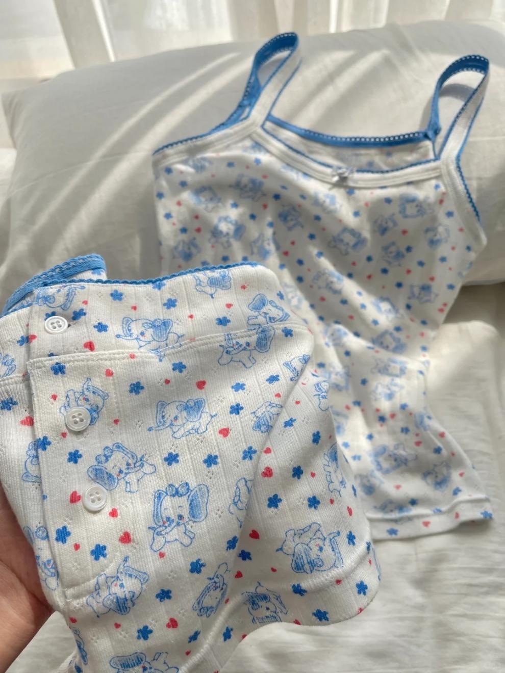 꽃 코끼리 달콤한 귀여운 잠옷 소녀 2025 새로운 여름 스파이스 소녀 조끼 반바지 외부 착용 홈 옷스토어 가기