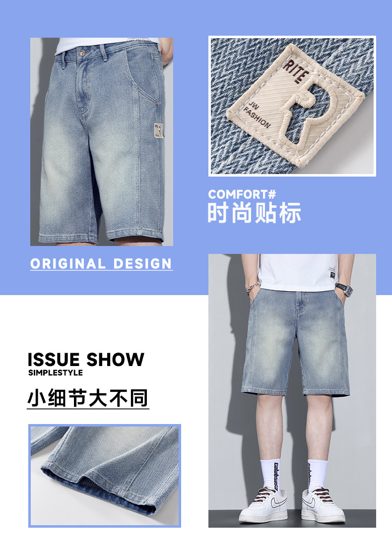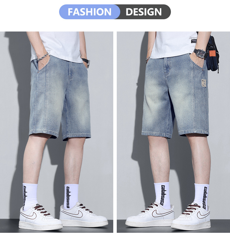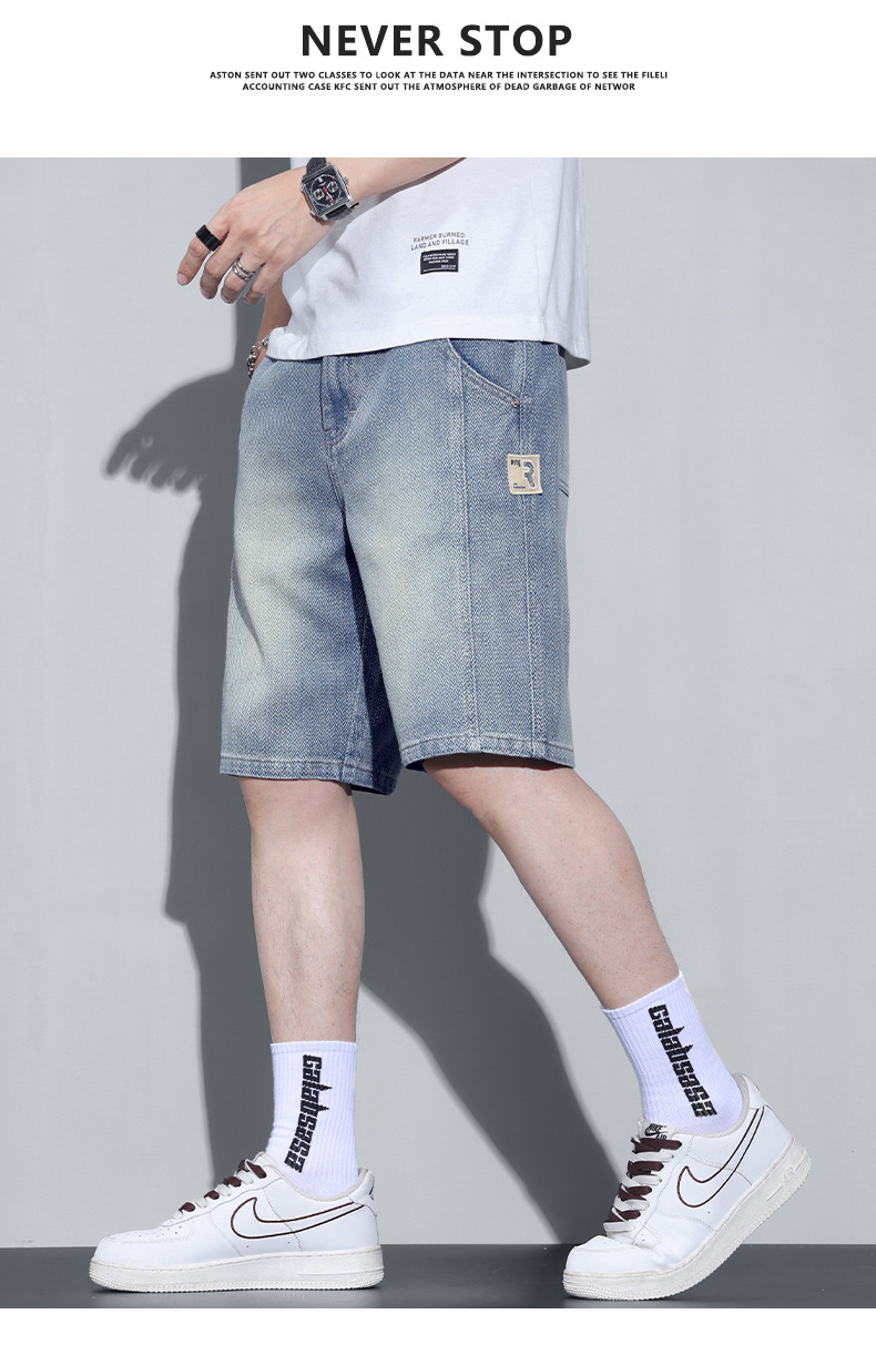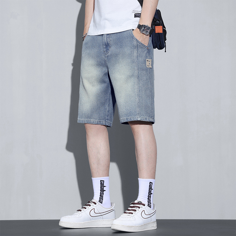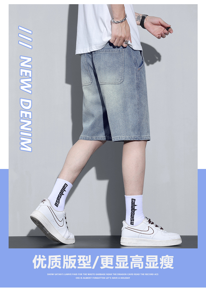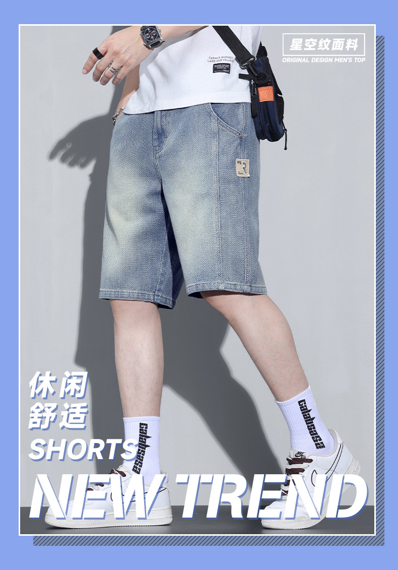 데님 반바지 남자 여름 뉴 스타 패턴 느슨한 스트레이트 바지 청소년 패션 올매치 캐주얼 바지스토어 가기