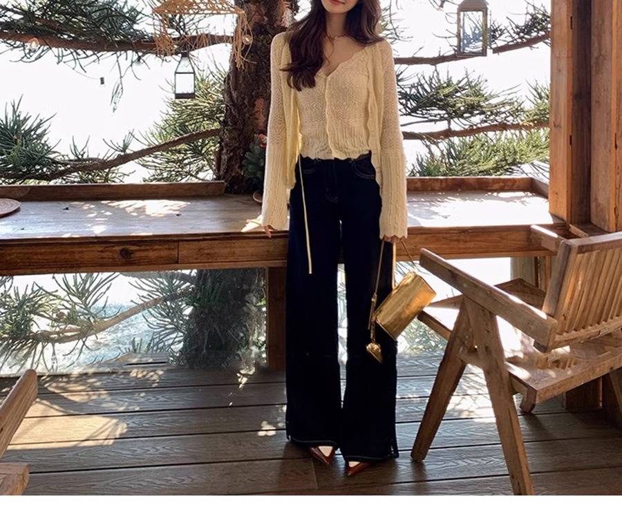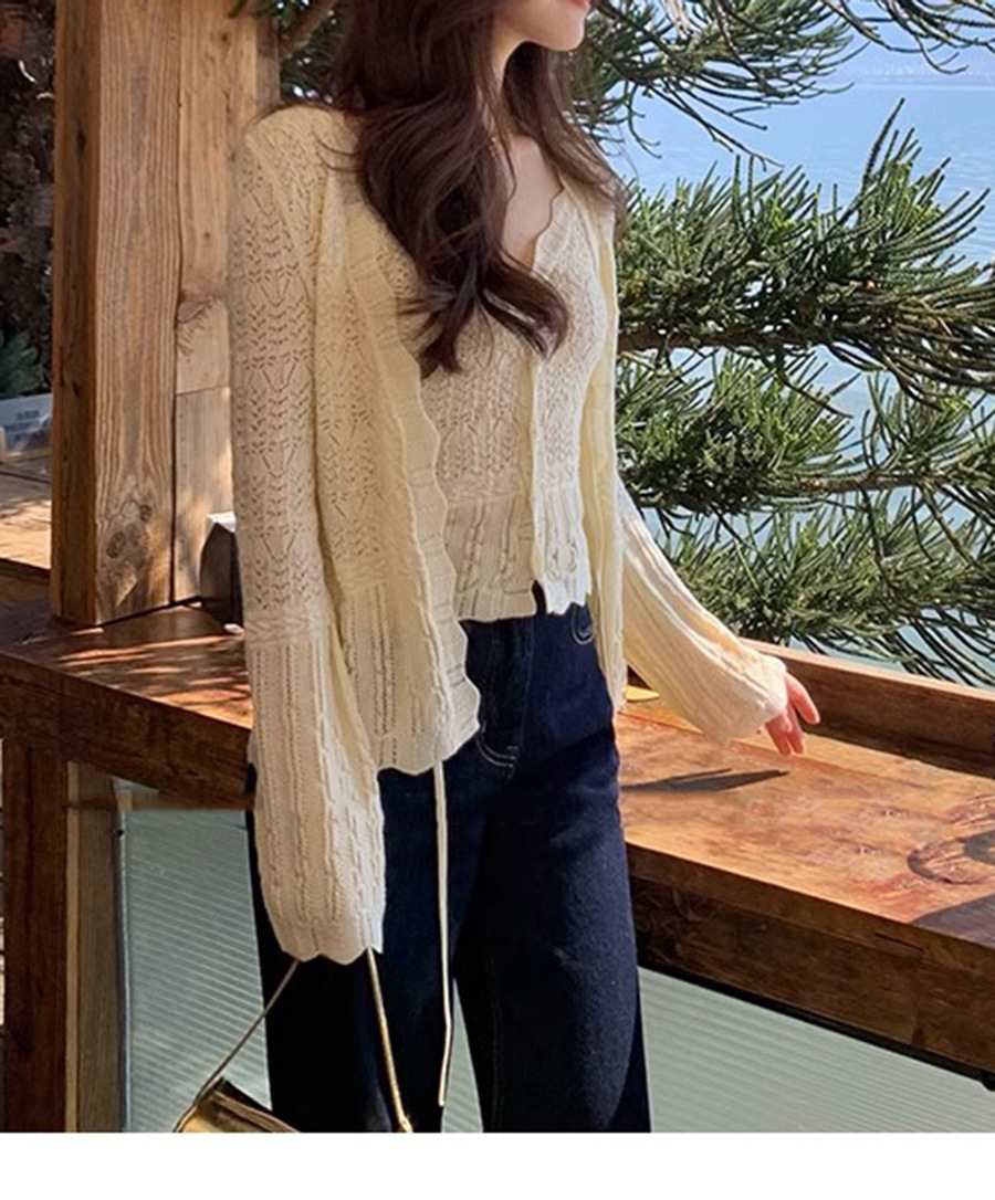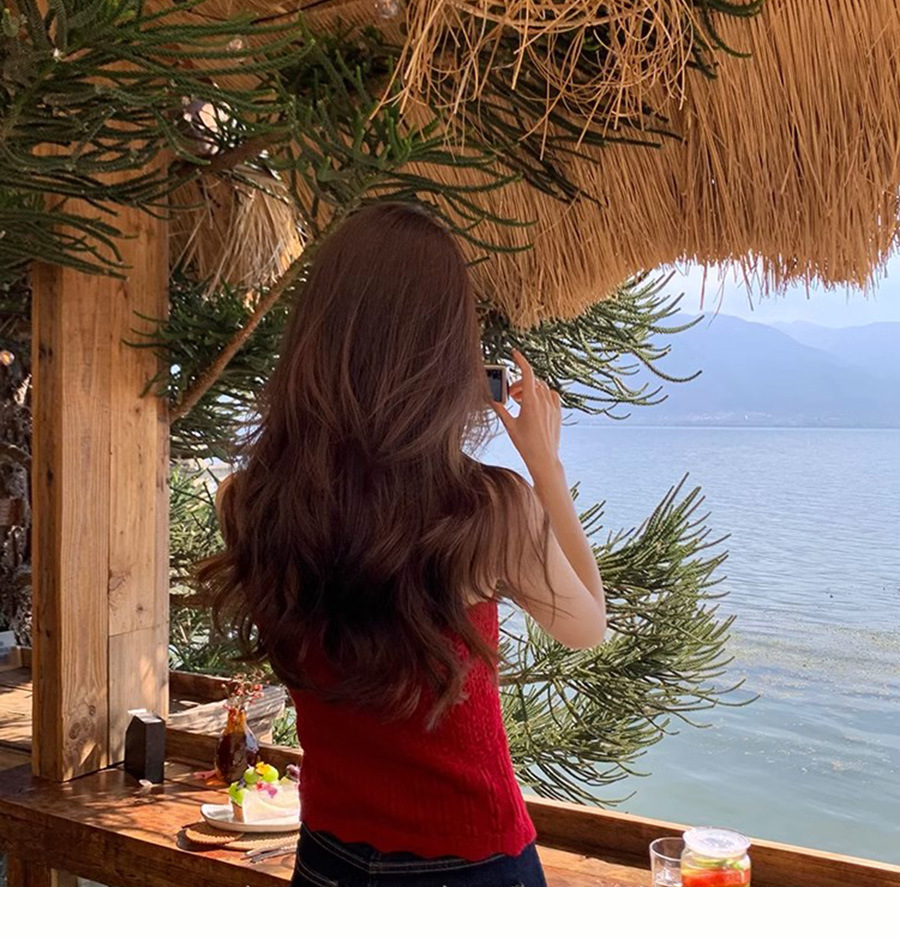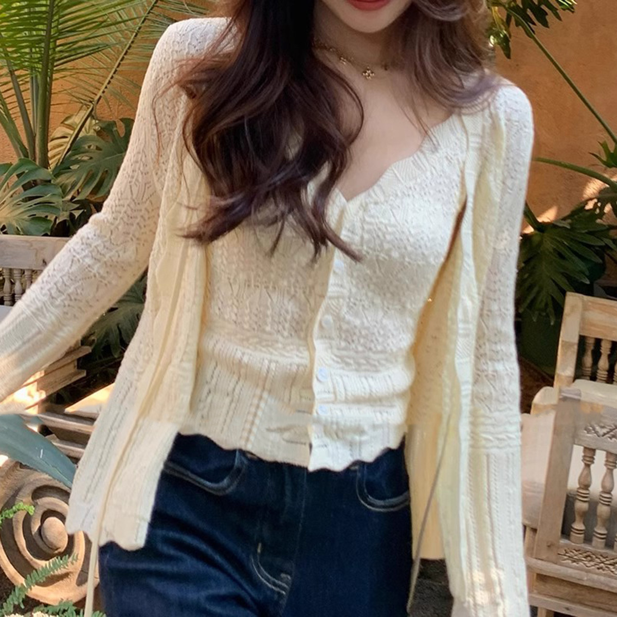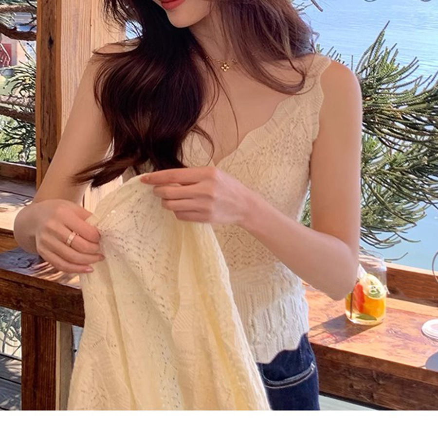 재고 있음 [가든 하우스] 봄 나들이용 중공 크로셰 브이넥 조끼 레이스업 스웨터 패션 슈트스토어 가기