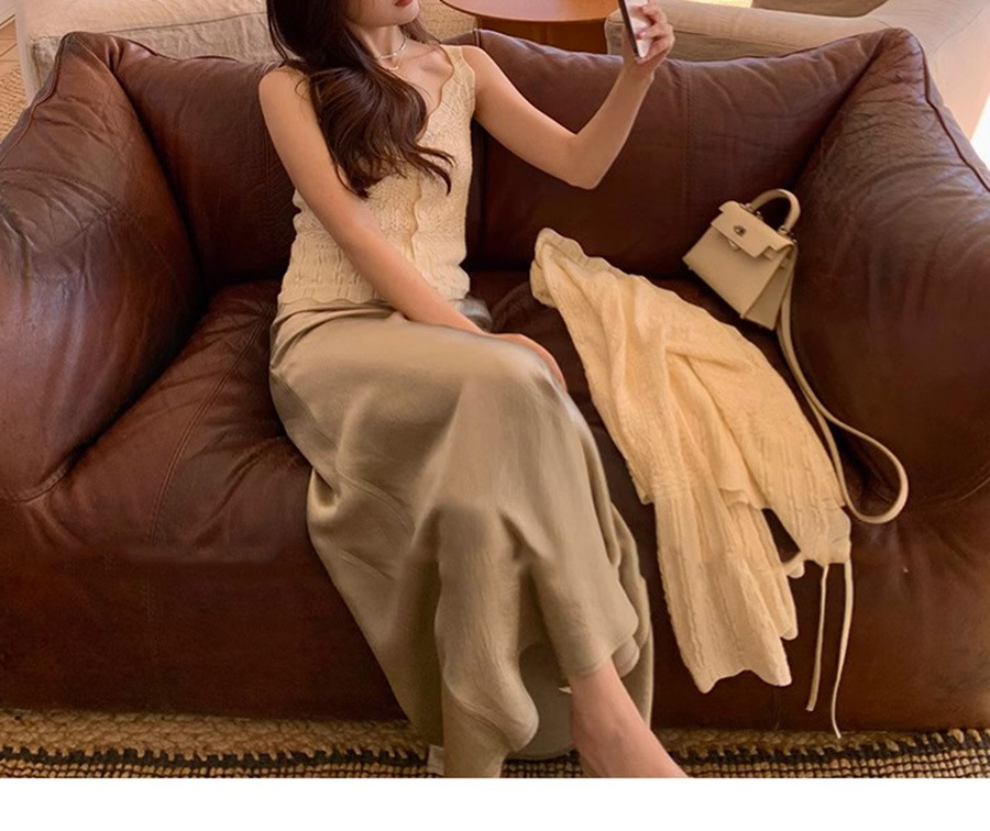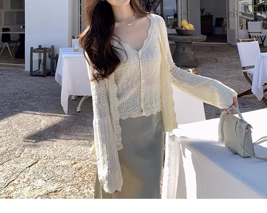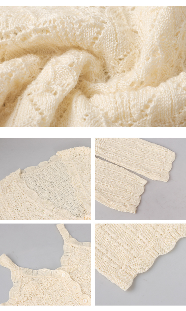 재고 있음 [가든 하우스] 봄 나들이용 중공 크로셰 브이넥 조끼 레이스업 스웨터 패션 슈트
