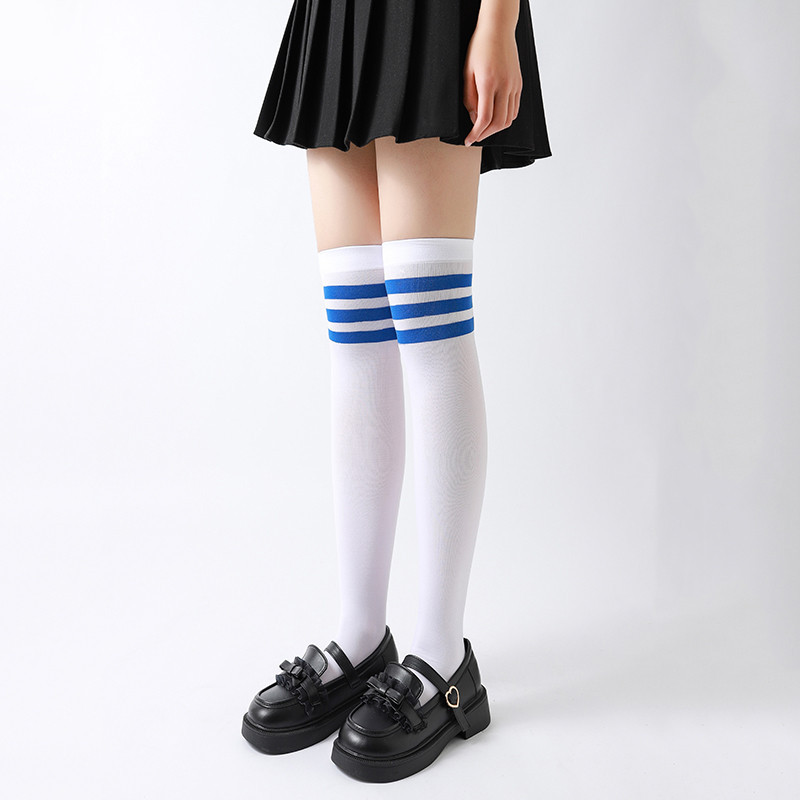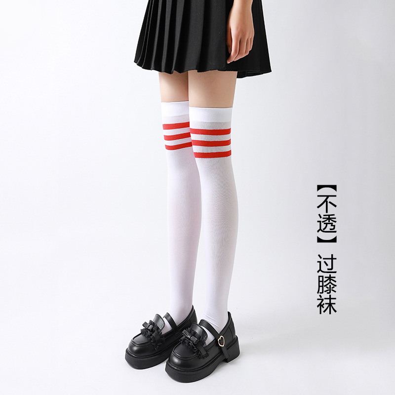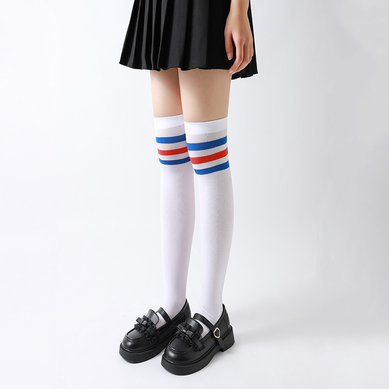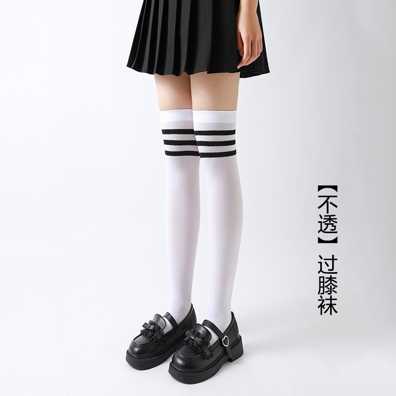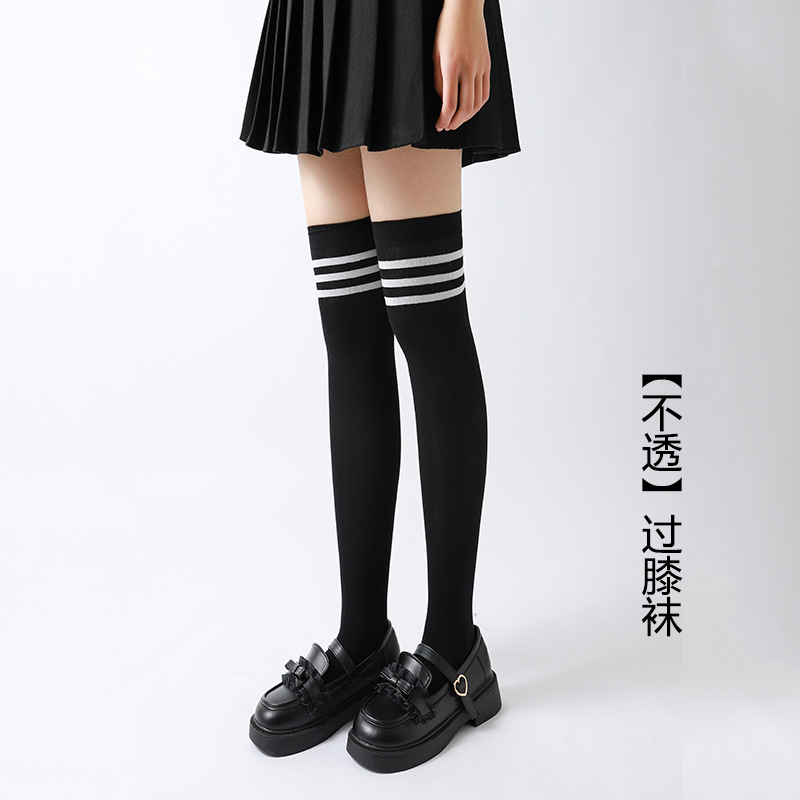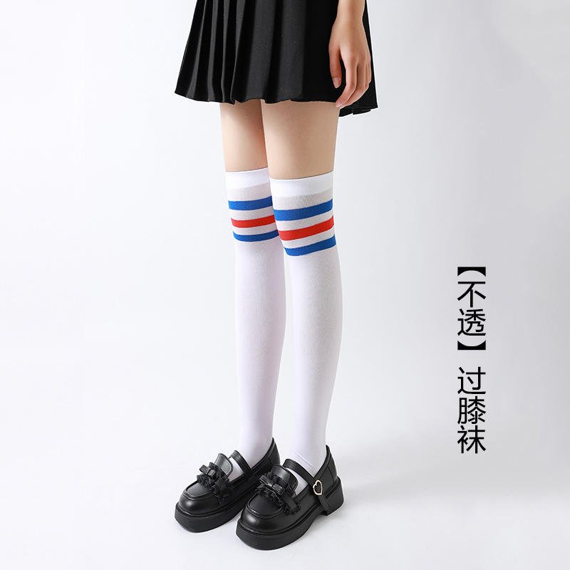 봄과 여름 얇은 어린이 벨벳 스타킹 무릎 위 소녀 양말 레트로 3 바 줄무늬 아기 양말