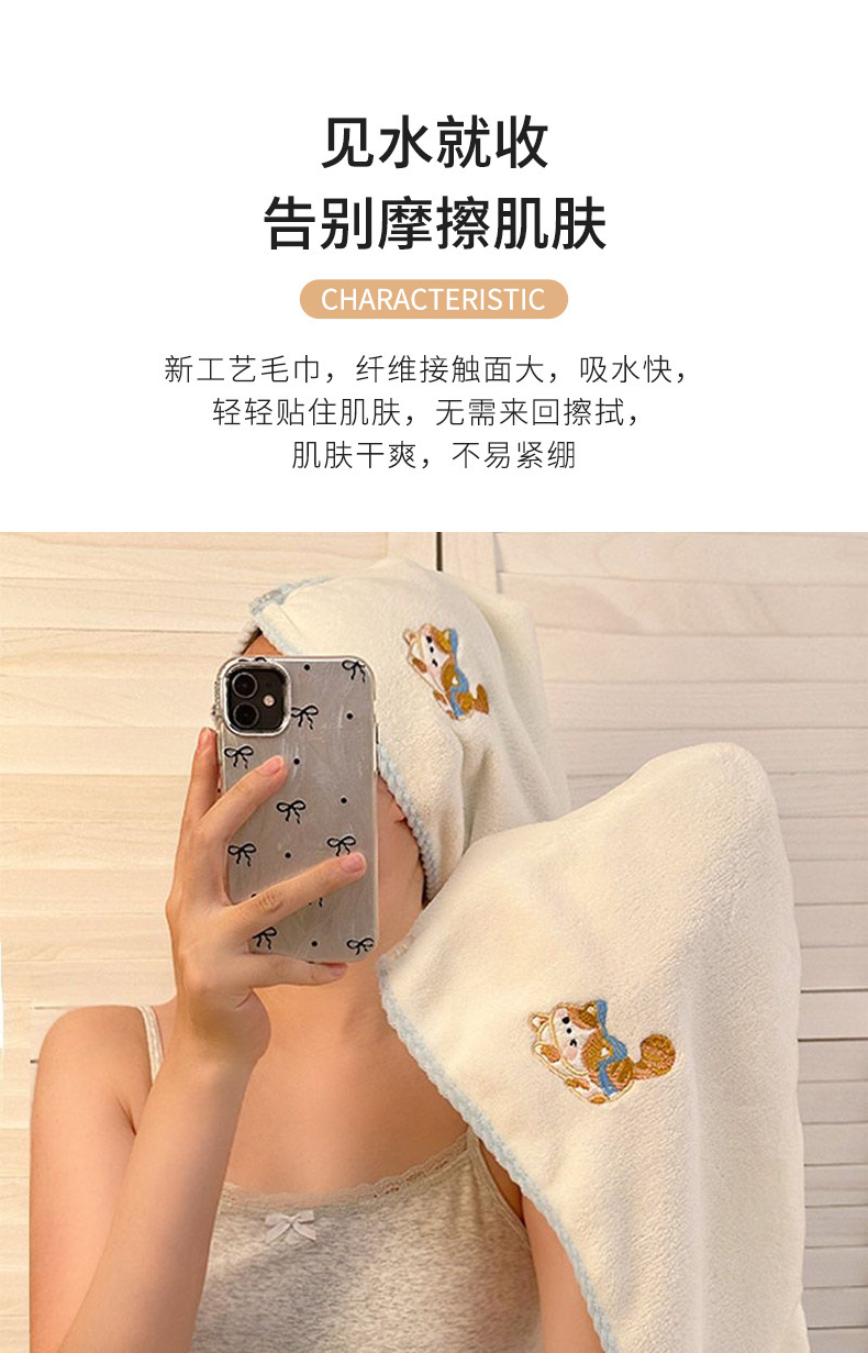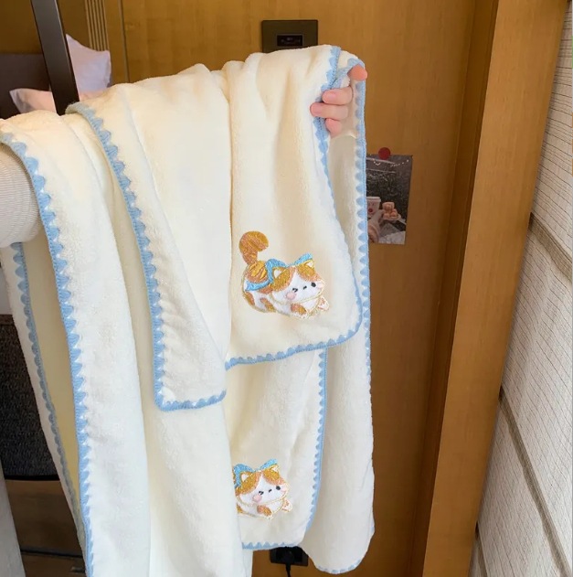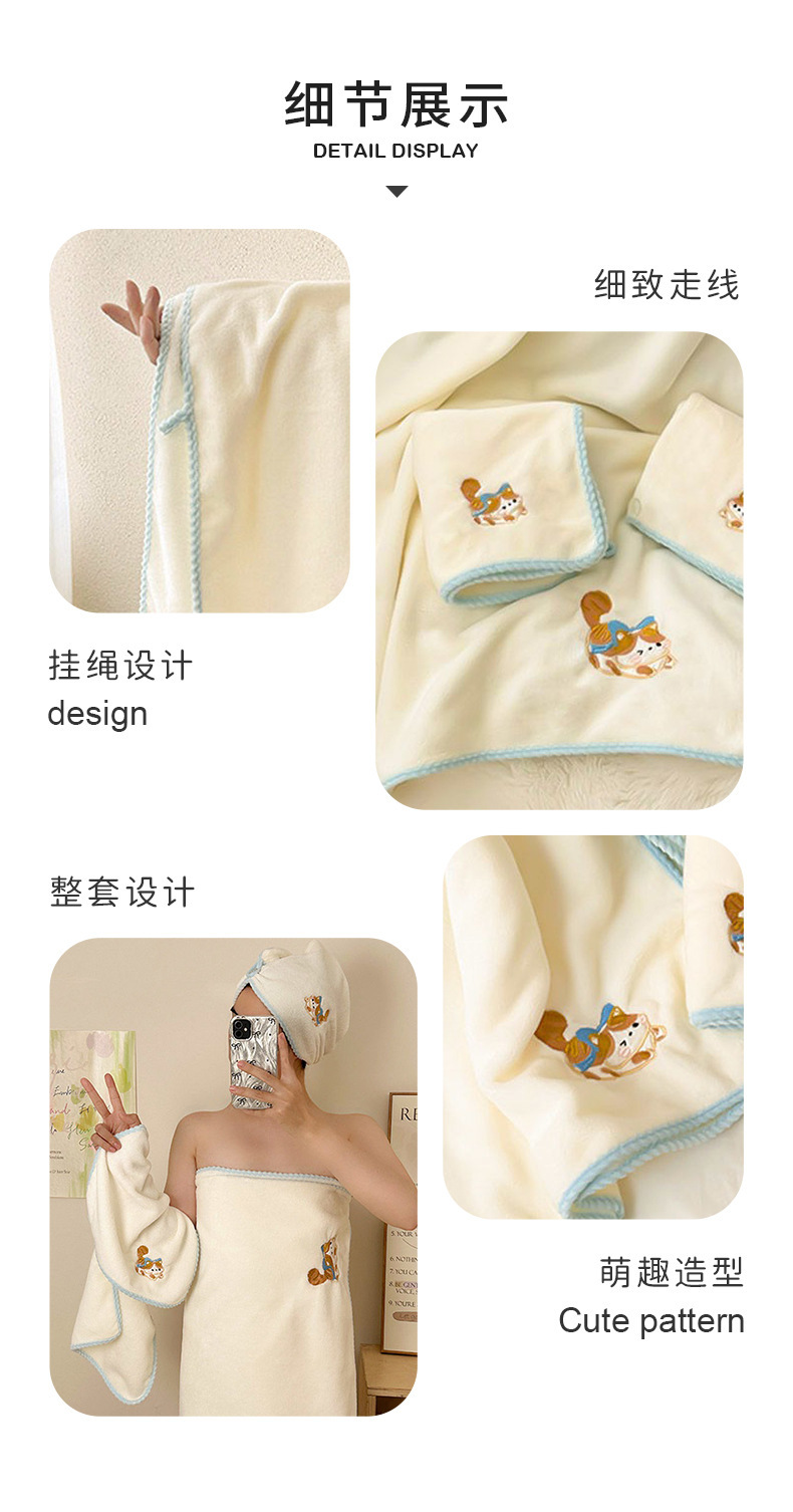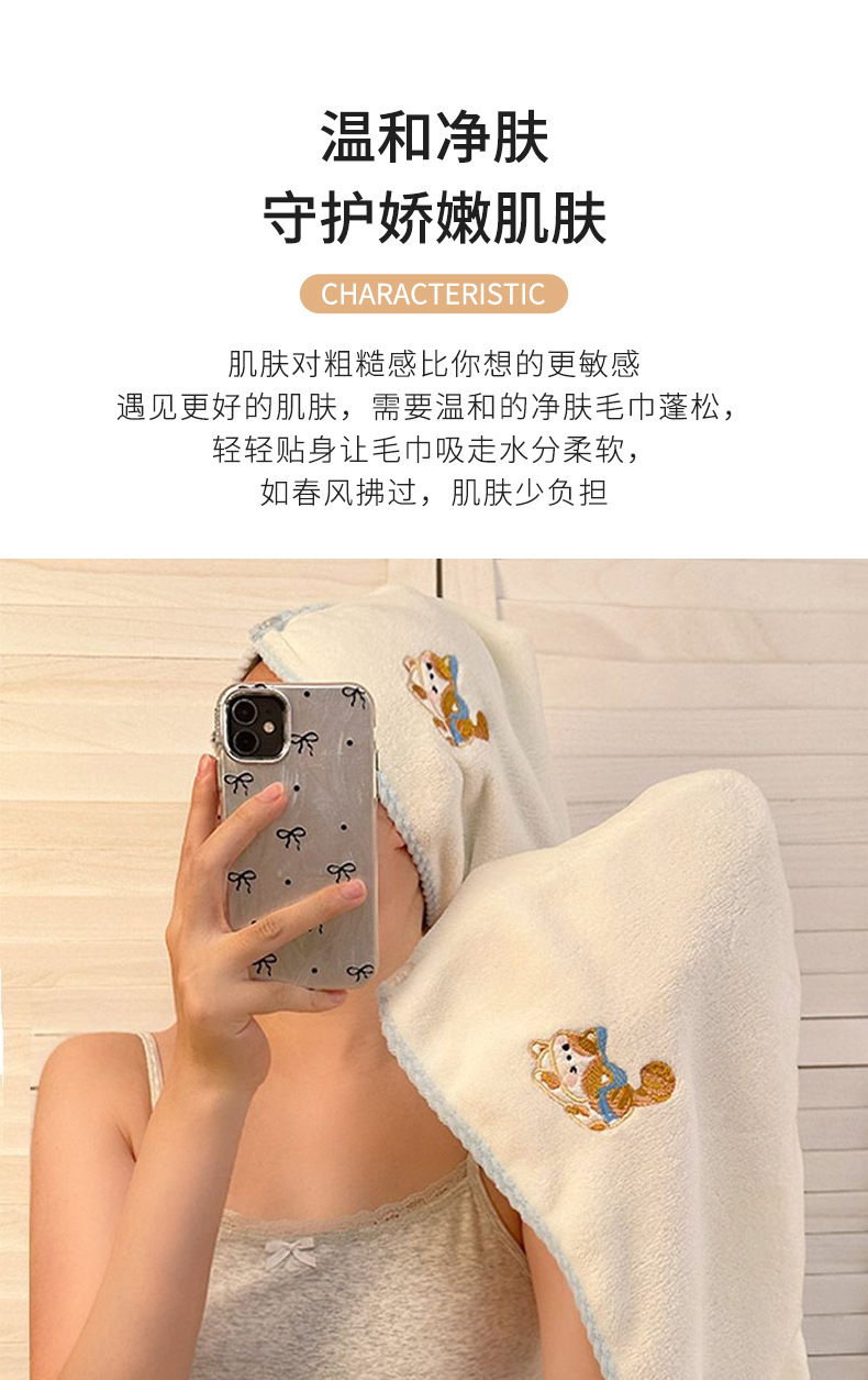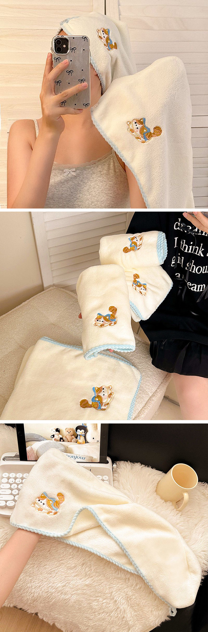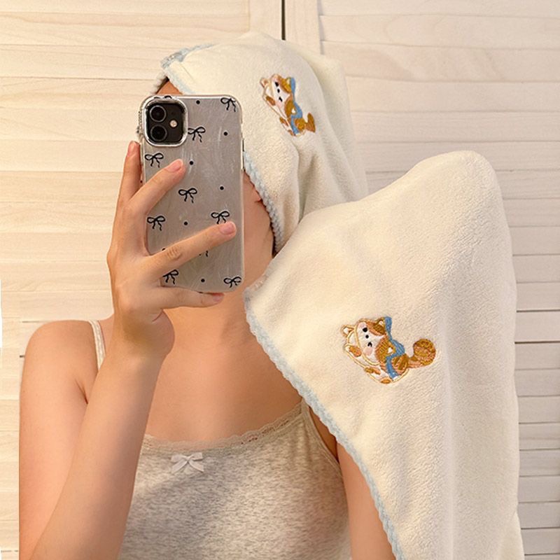 자수 코랄벨벳 드라이 헤어캡, 머리싸개, 긴머리용 귀여운 고양이 디자인, 신상 두꺼운 샤워캡, 드라이 헤어타월, 털빠짐 없음