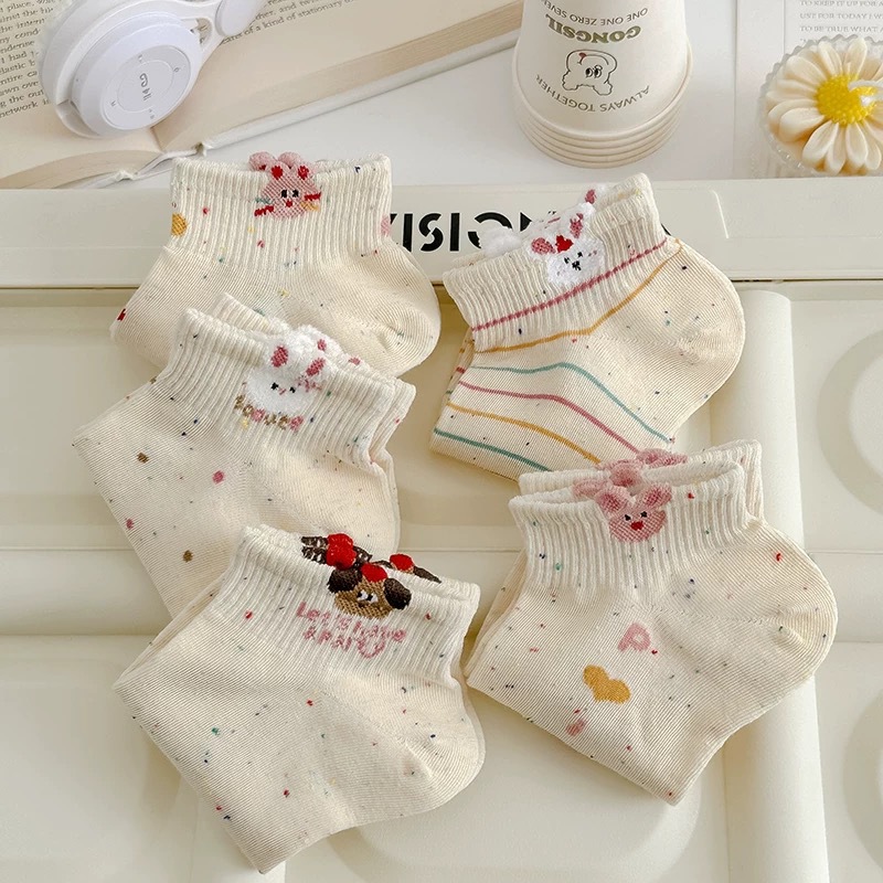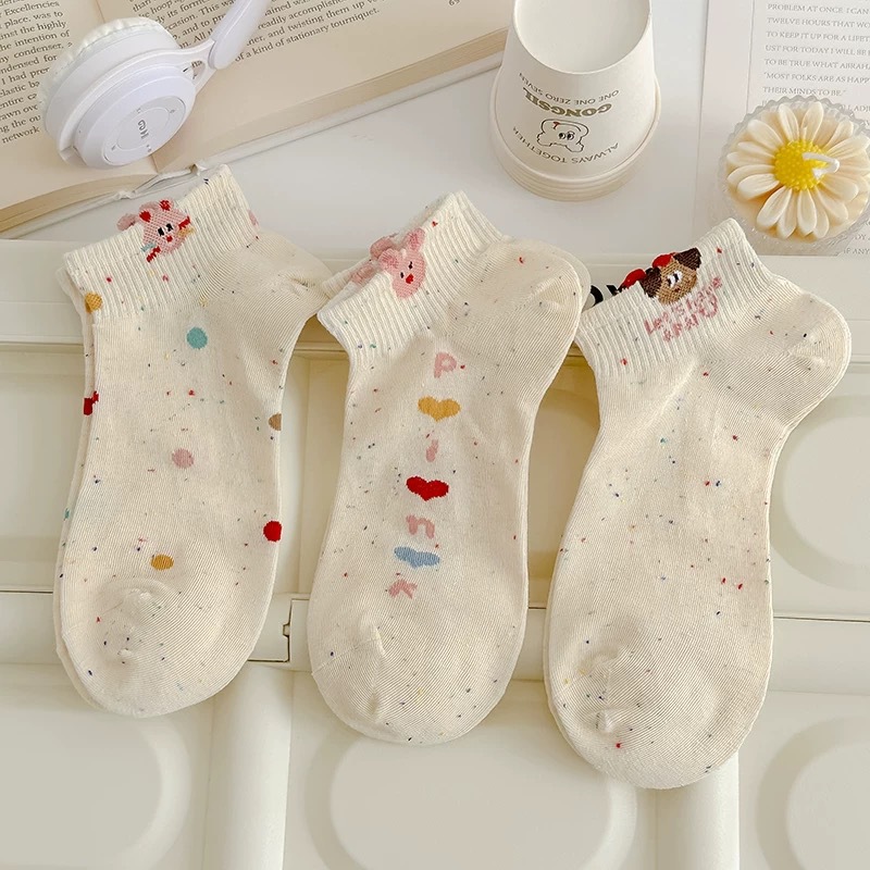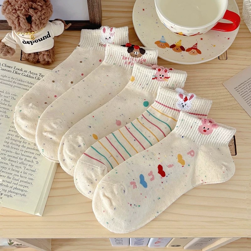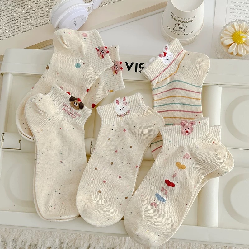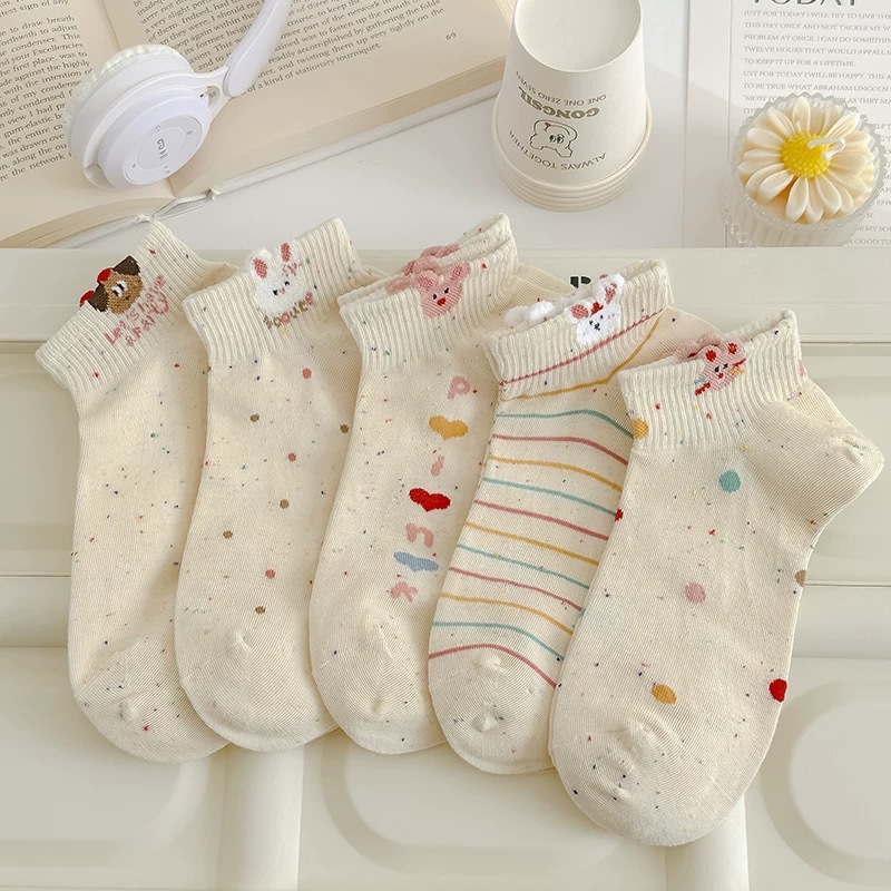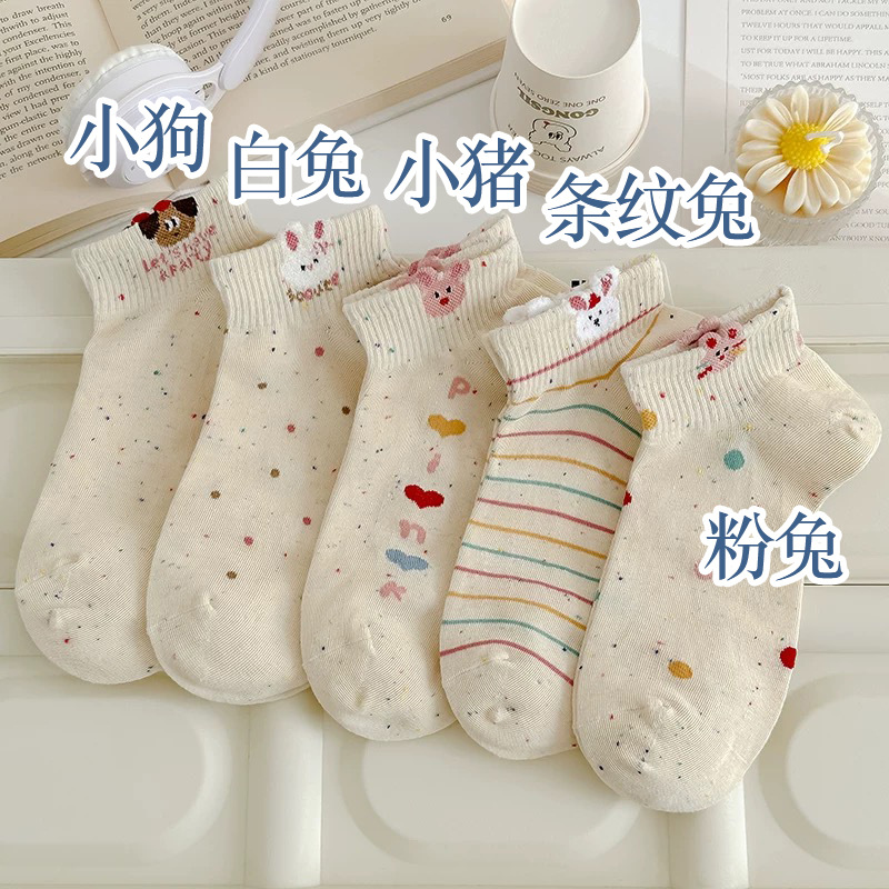양말 여성용 도트 원사 토끼 봄 여름 양말 귀여운 만화 봄 가을 짧은 튜브 얕은 입 새로운 보트 양말 ins 트렌드스토어 가기