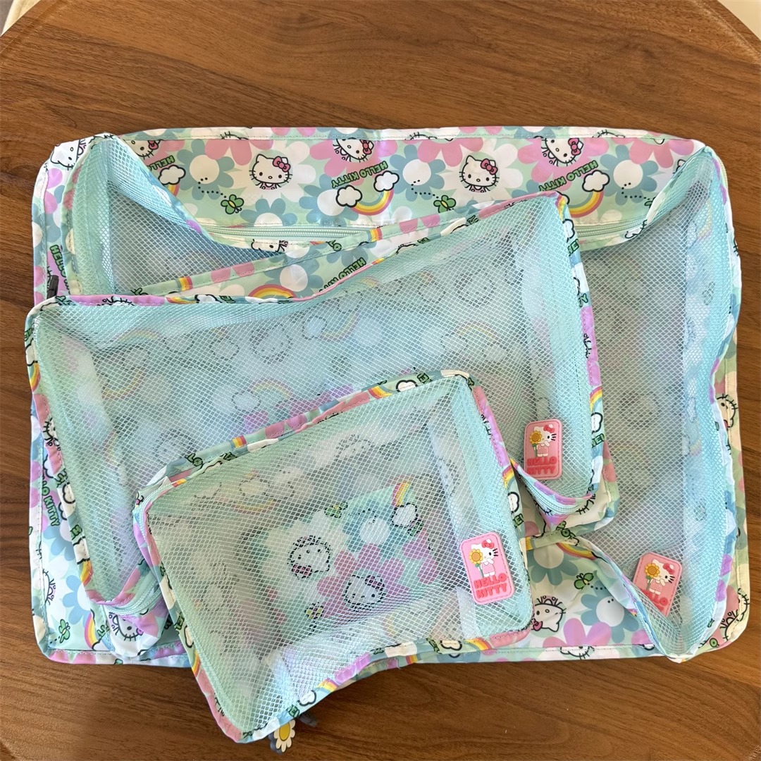 일본풍 귀여운 키티 고양이 여행용 수납 가방 3종 세트, 출장용 가방, 여행 가방, 옷 휴대용 분리 가방