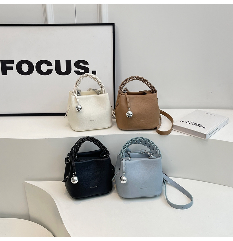 하이 엔드 짠 휴대용 버킷 백 2024 새로운 한국식 부드러운 가죽 리치 패턴 대용량 어깨 크로스 백 트렌디스토어 가기