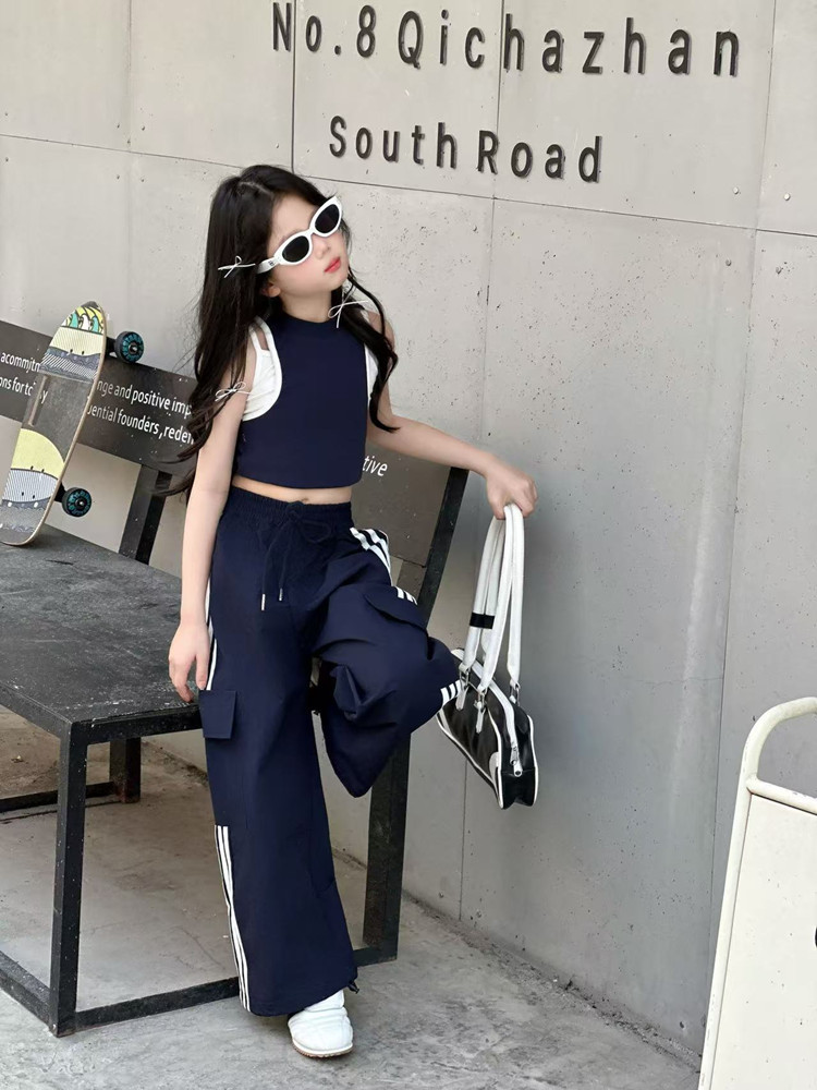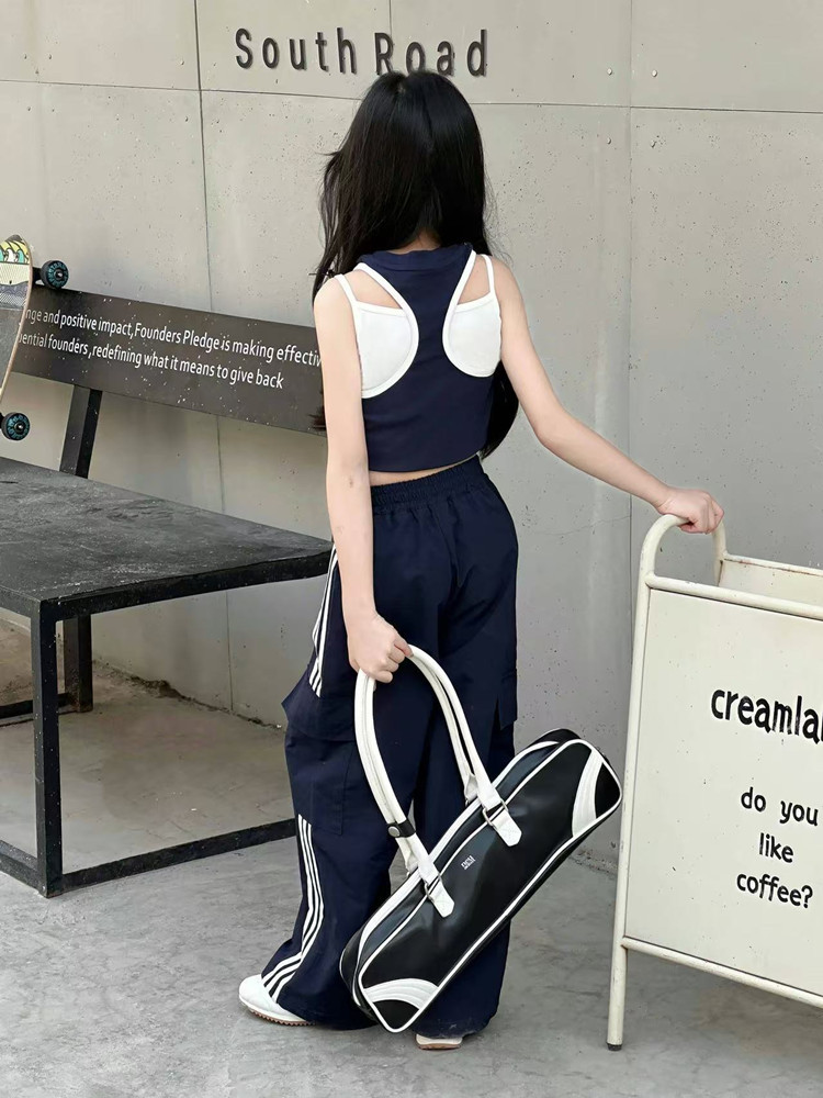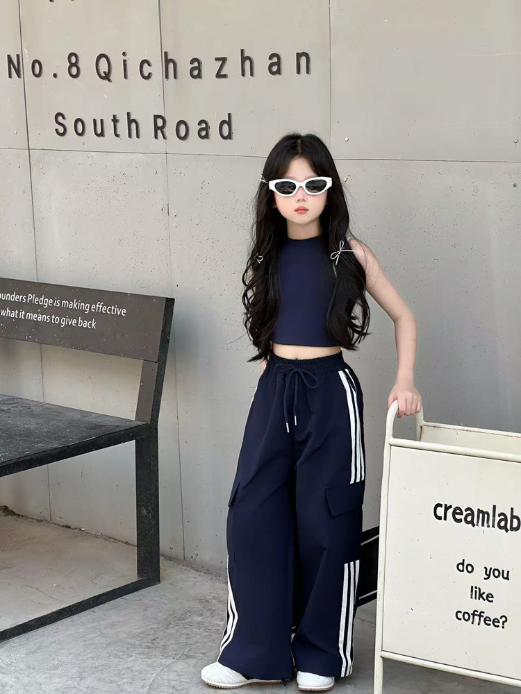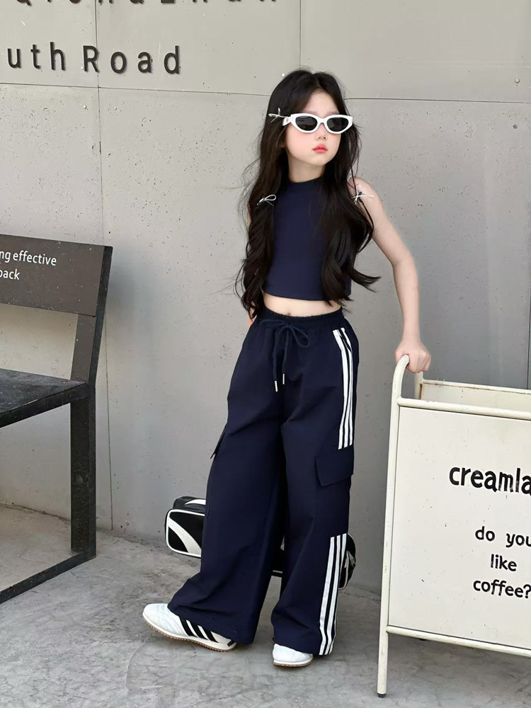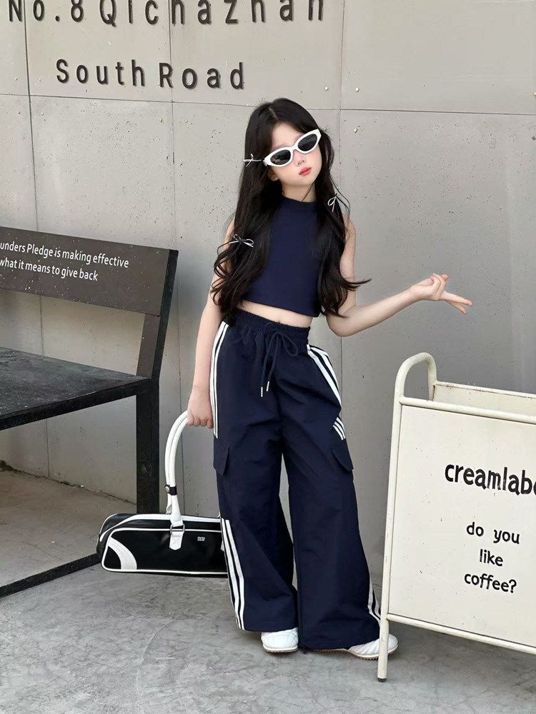 소녀 여름 얇은 스포츠 바지 트렌디 한 멋진 작업복 바지 어린이 봄과 여름 스포츠 바지 큰 어린이 캐주얼 올 매치 와이드 레그 바지