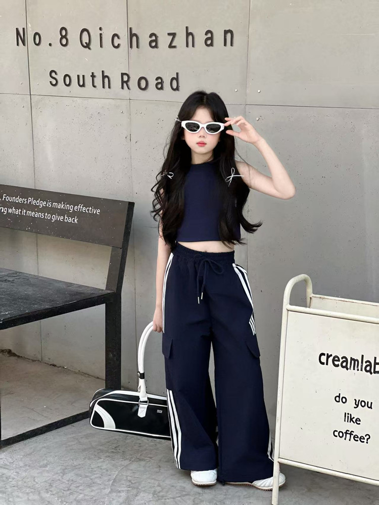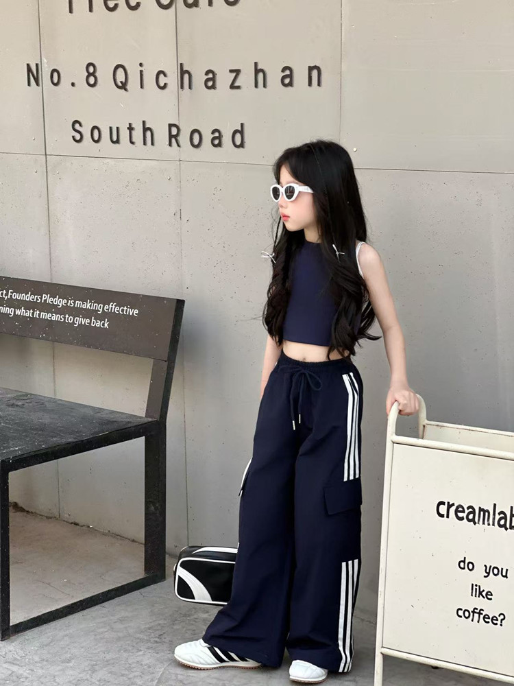 소녀 여름 얇은 스포츠 바지 트렌디 한 멋진 작업복 바지 어린이 봄과 여름 스포츠 바지 큰 어린이 캐주얼 올 매치 와이드 레그 바지스토어 가기