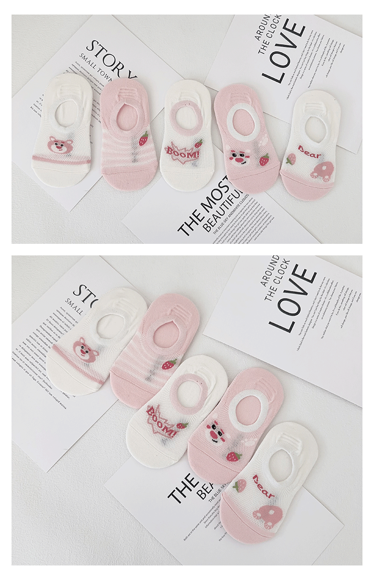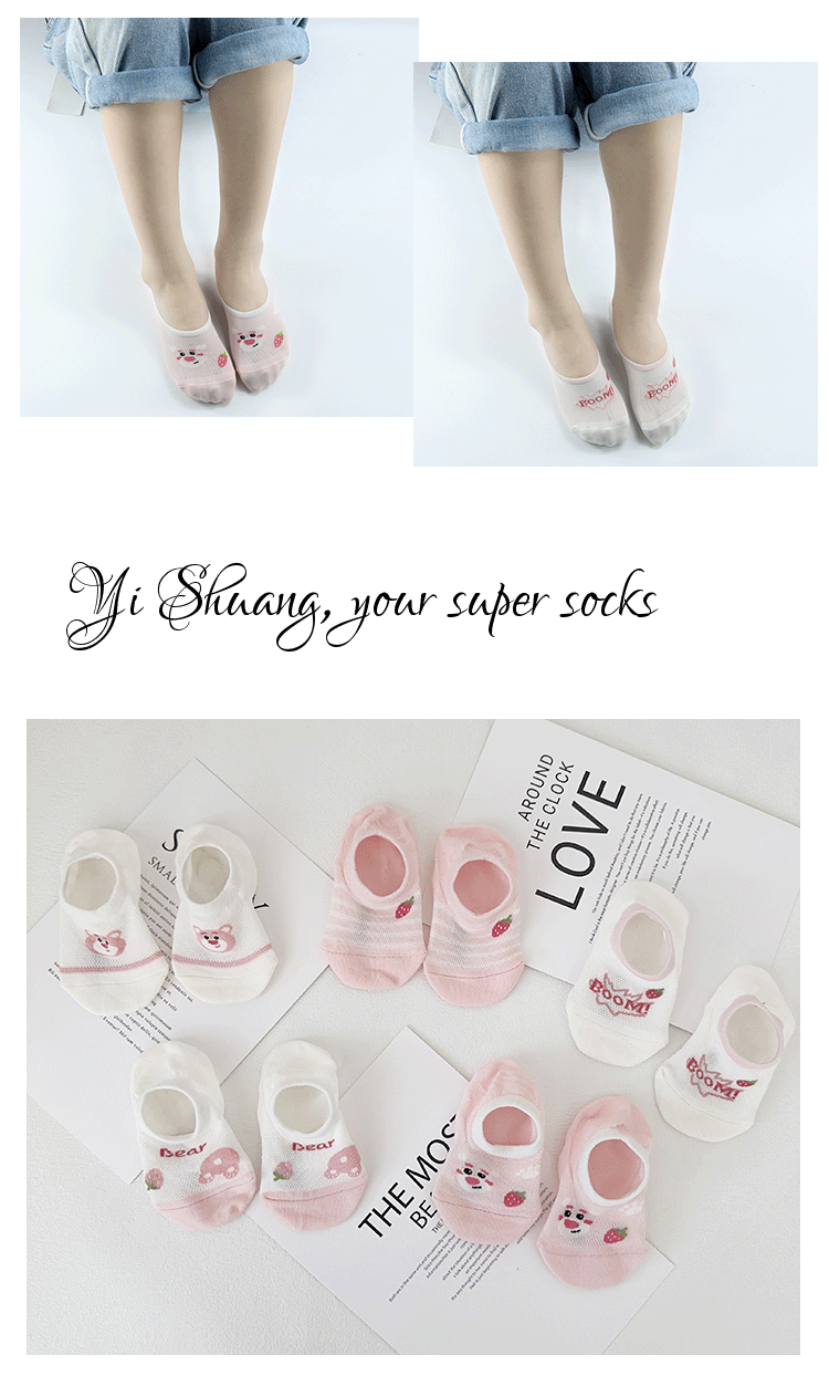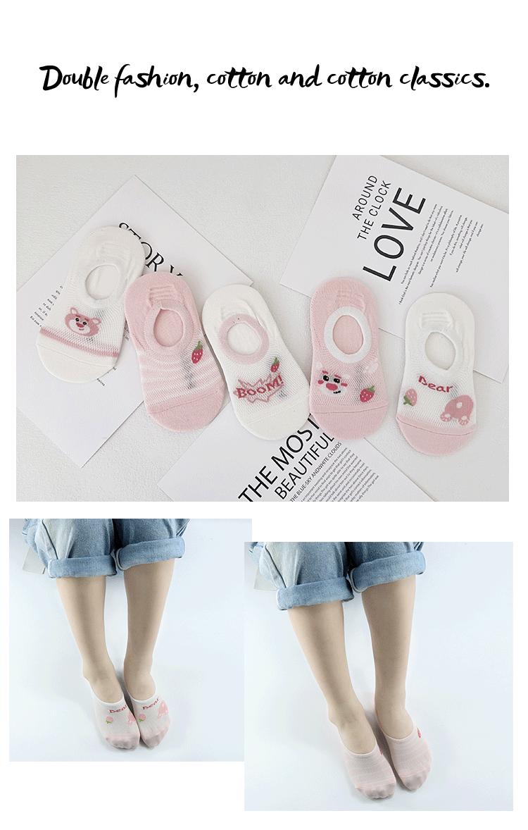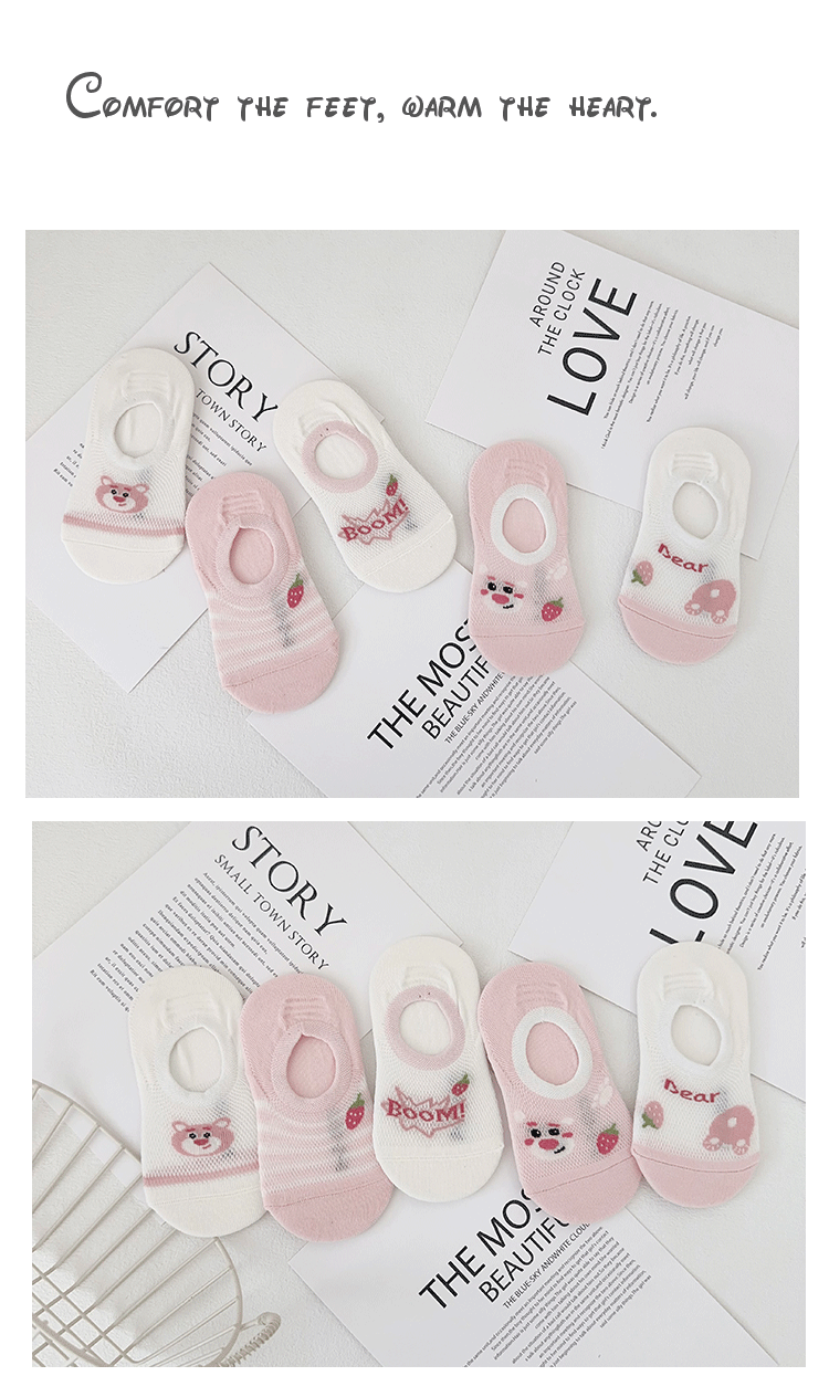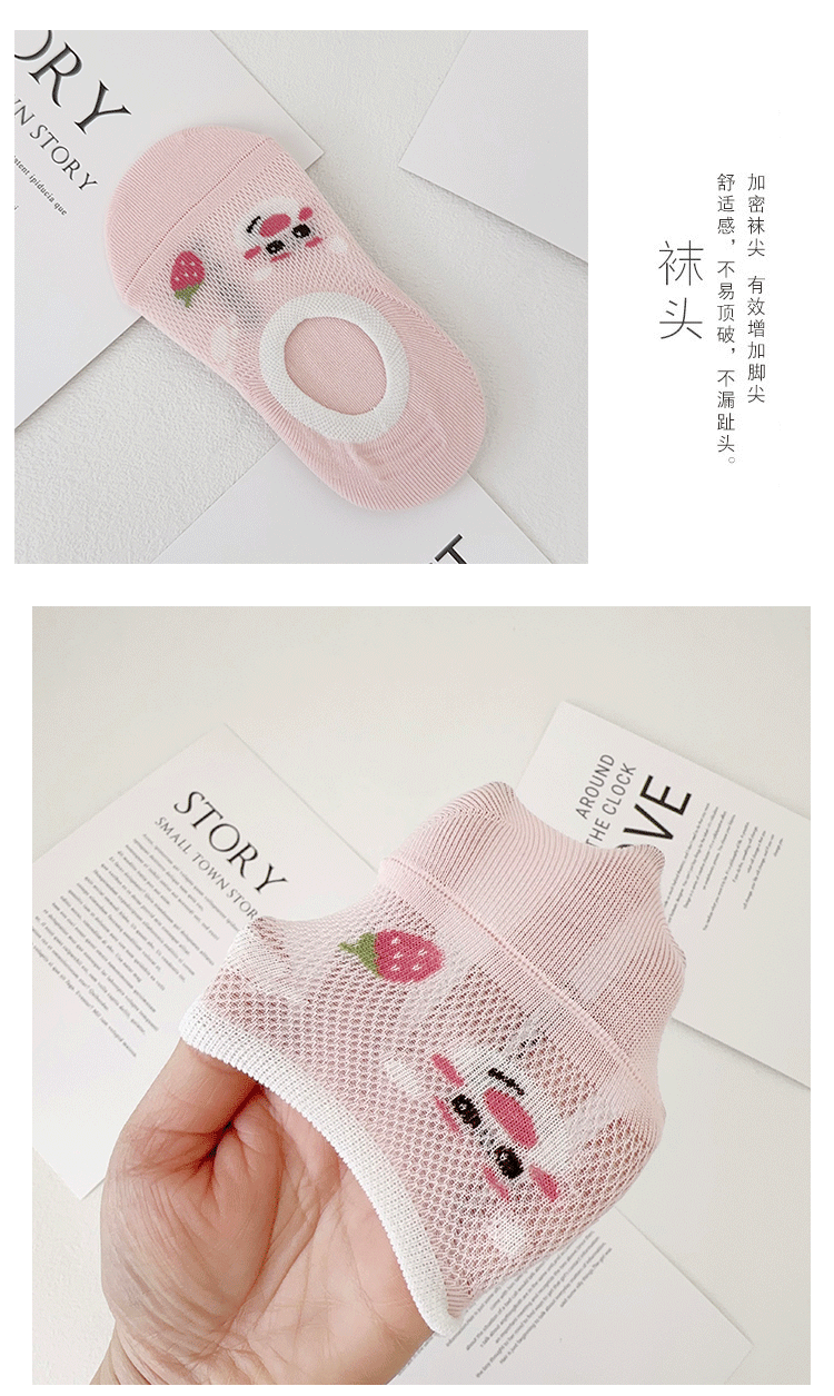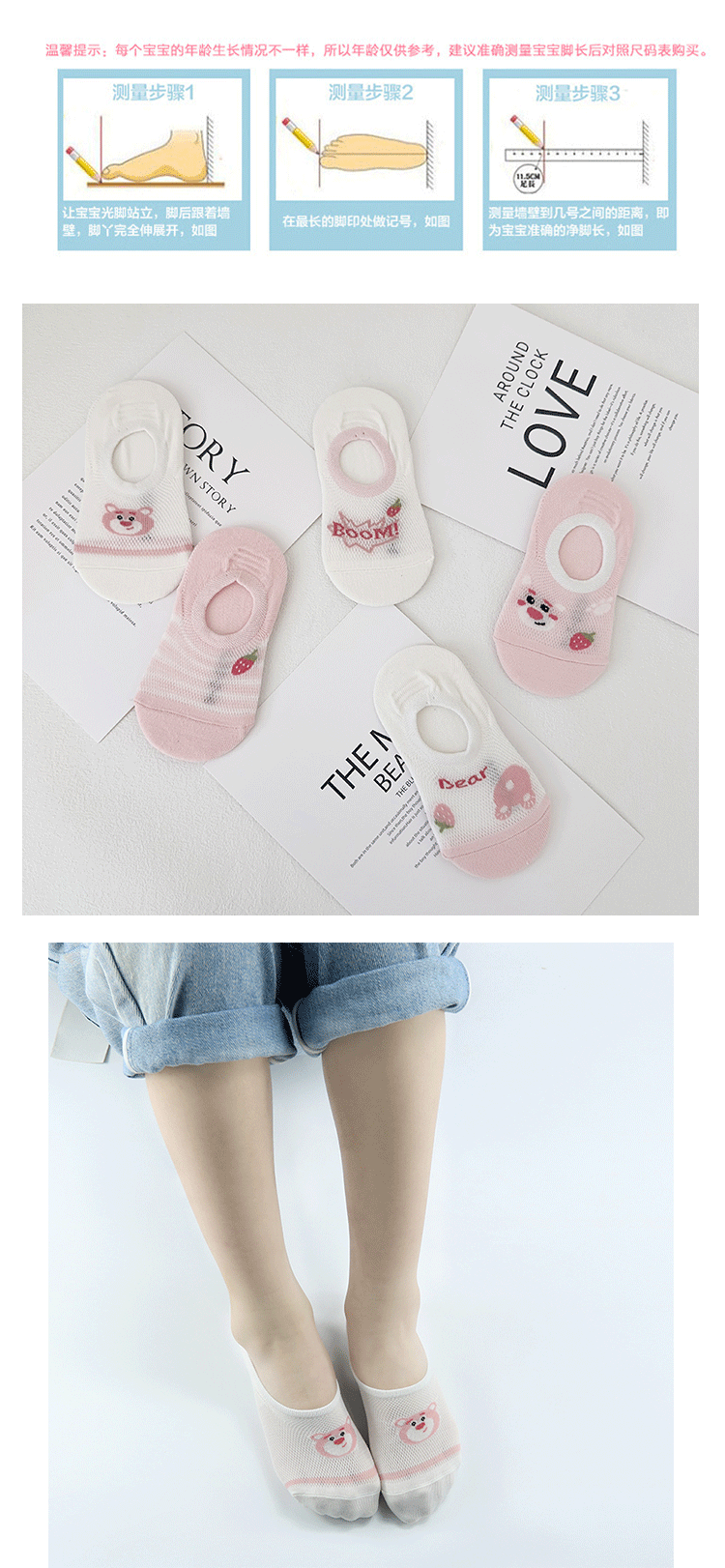 이족 쌍 어린이 양말 여름 메쉬 만화 딸기 곰 보트 양말 빗 코튼 걸스 얕은 입 보이지 않는 양말스토어 가기