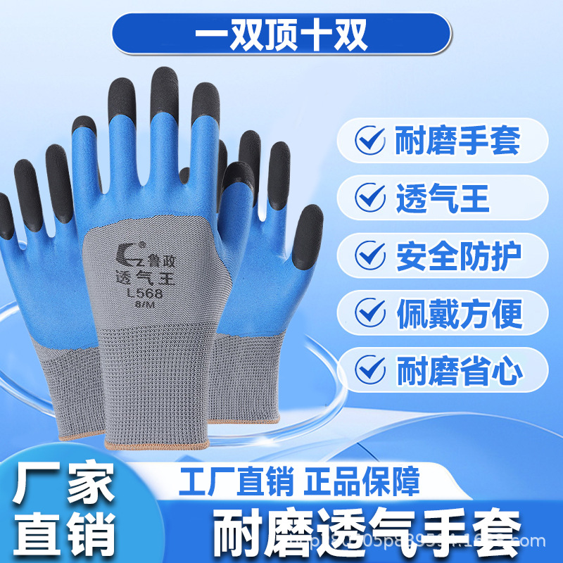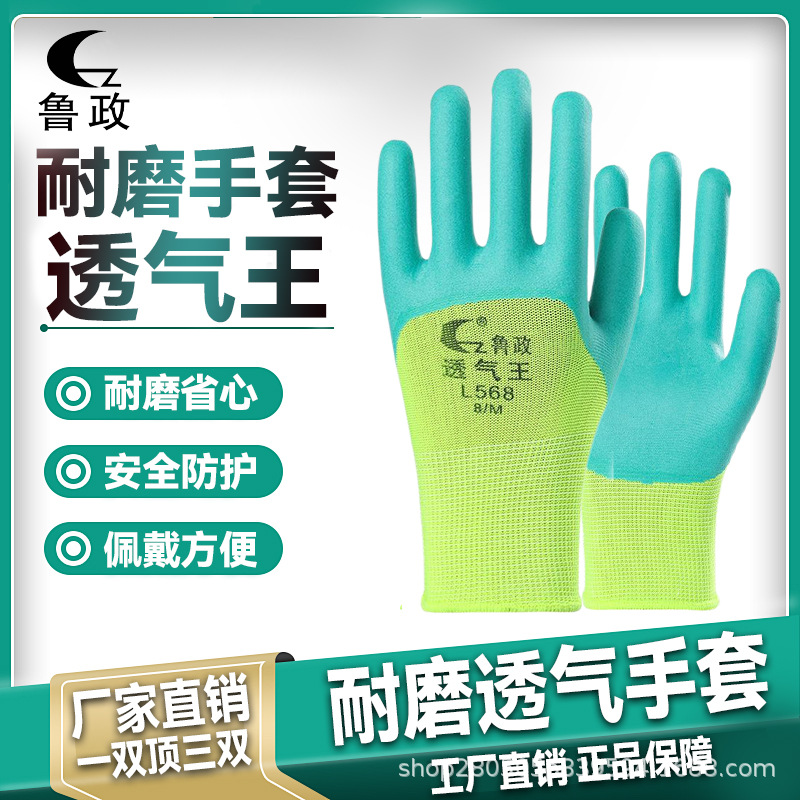 루정 통기성 작업용 장갑, 내마모성, 미끄럼 방지, 손가락 보강, 남녀 공용 작업 현장 안전 보호 장갑