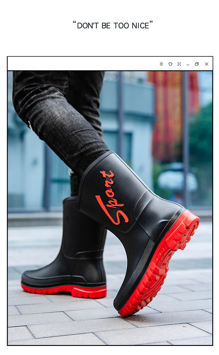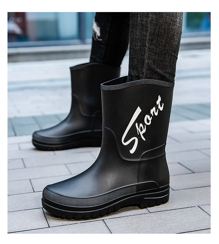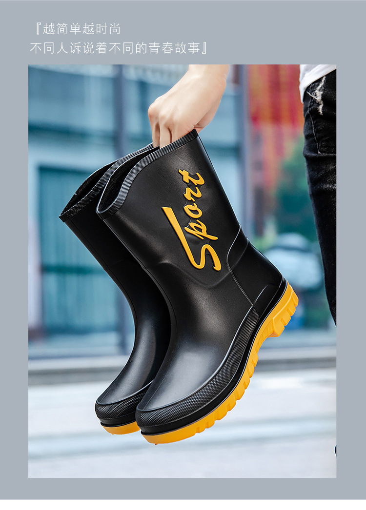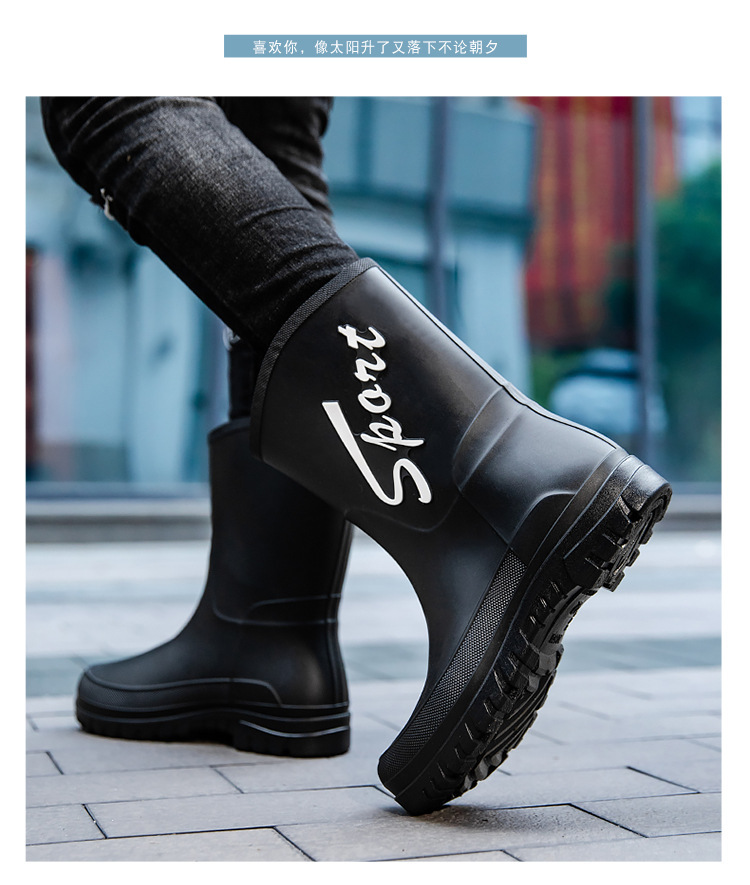 25 년 새로운 물 신발 남성 겉옷 패션 미끄럼 방지 두꺼운 내마모성 비오는 날 튜브 방수 고무 신발