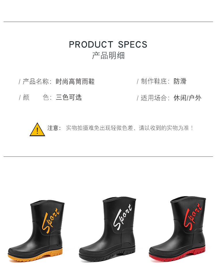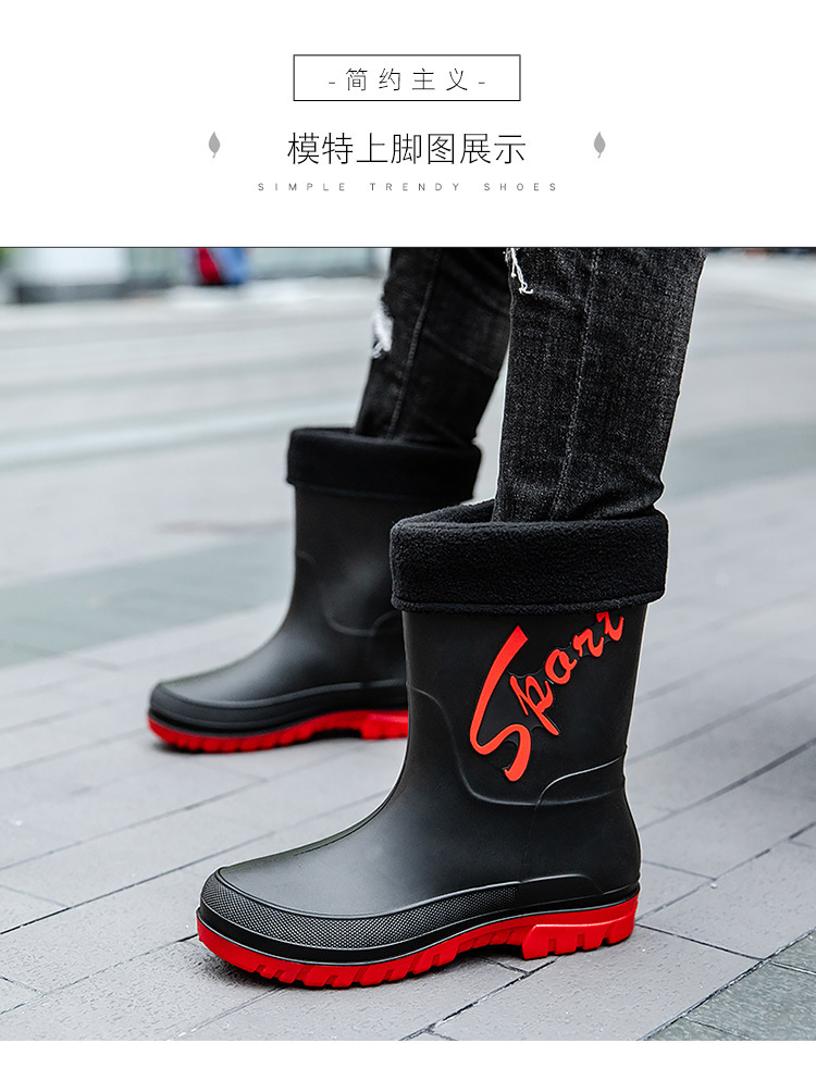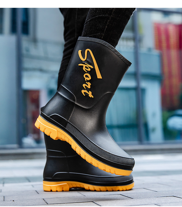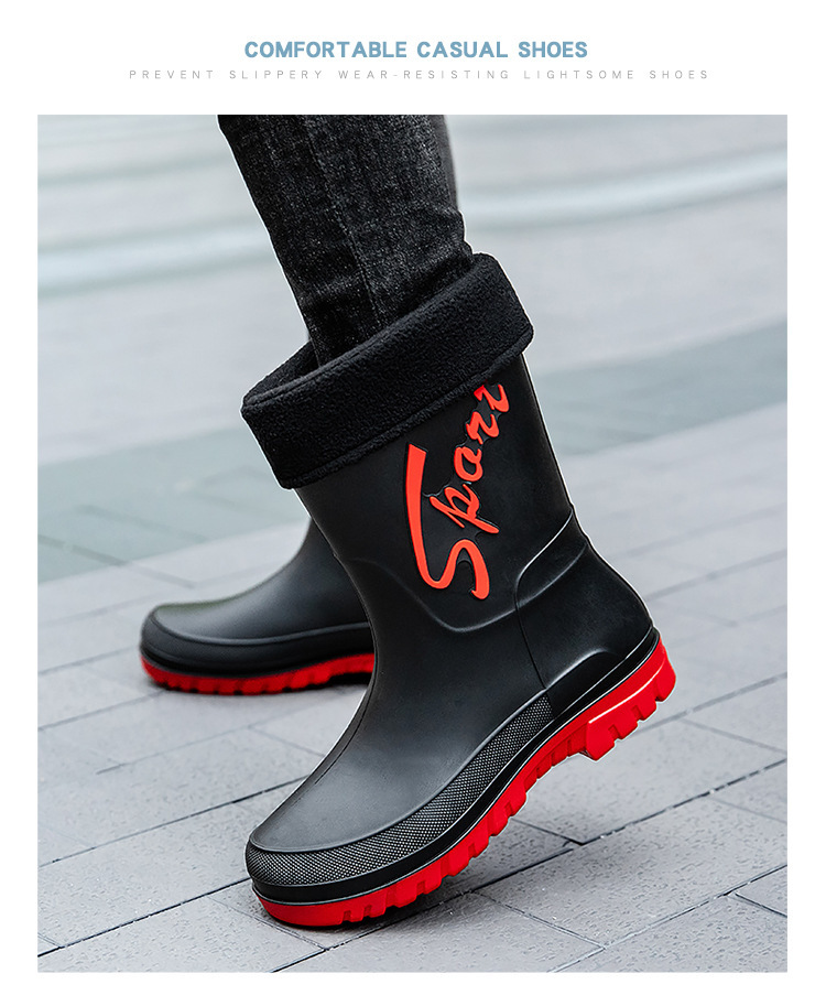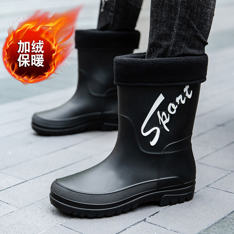 25 년 새로운 물 신발 남성 겉옷 패션 미끄럼 방지 두꺼운 내마모성 비오는 날 튜브 방수 고무 신발
