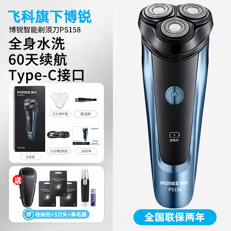 • Feike의 Borui PS158 세척 가능한 Type-C 충전 + 무료 보관 가방 + 블레이드 3개 + 코털 제거기(Feike FS318과 동일한 모델)
