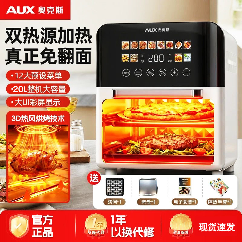 • 20L 에어프라이어 오븐 전자레인지 겸용 (전체 스테인리스 스틸 내부, 투명창 디자인)